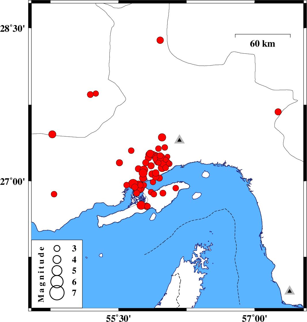 2008/09/17 17:43:50.3 22:13:50.3 27.255.944 ML:4.6 33 km West of Bandar-e abbas, Hormozgan Province