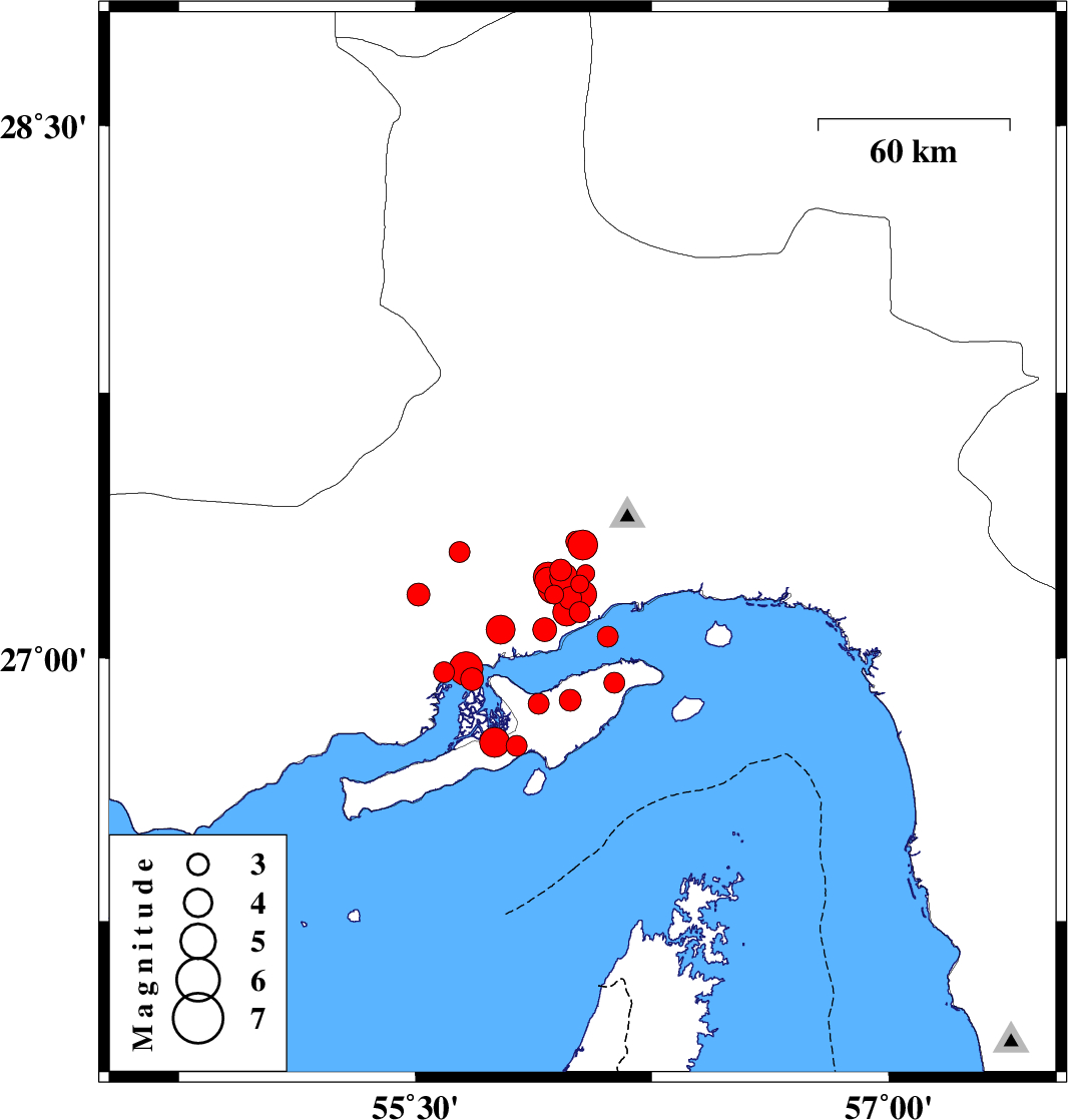 2008/09/12 02:20:33.2 06:50:33.2 26.7555.826 ML:2.9 Persian Gulf, 50 km South-West of Qeshm