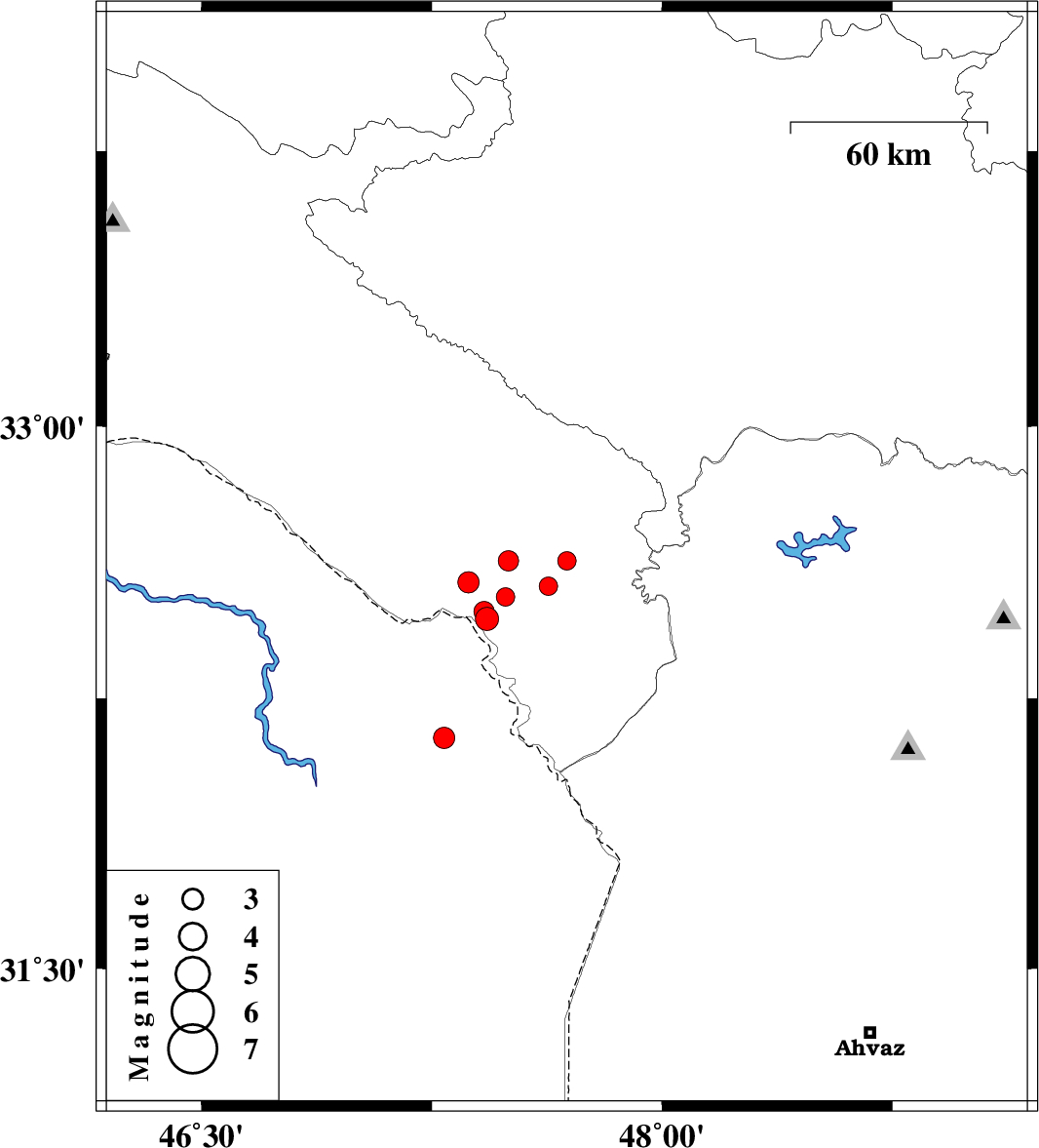 2008/09/17 19:11:57.6 23:41:57.6 32.6347.514 ML:2.9 23 km East of Dehloran, Ilam Province