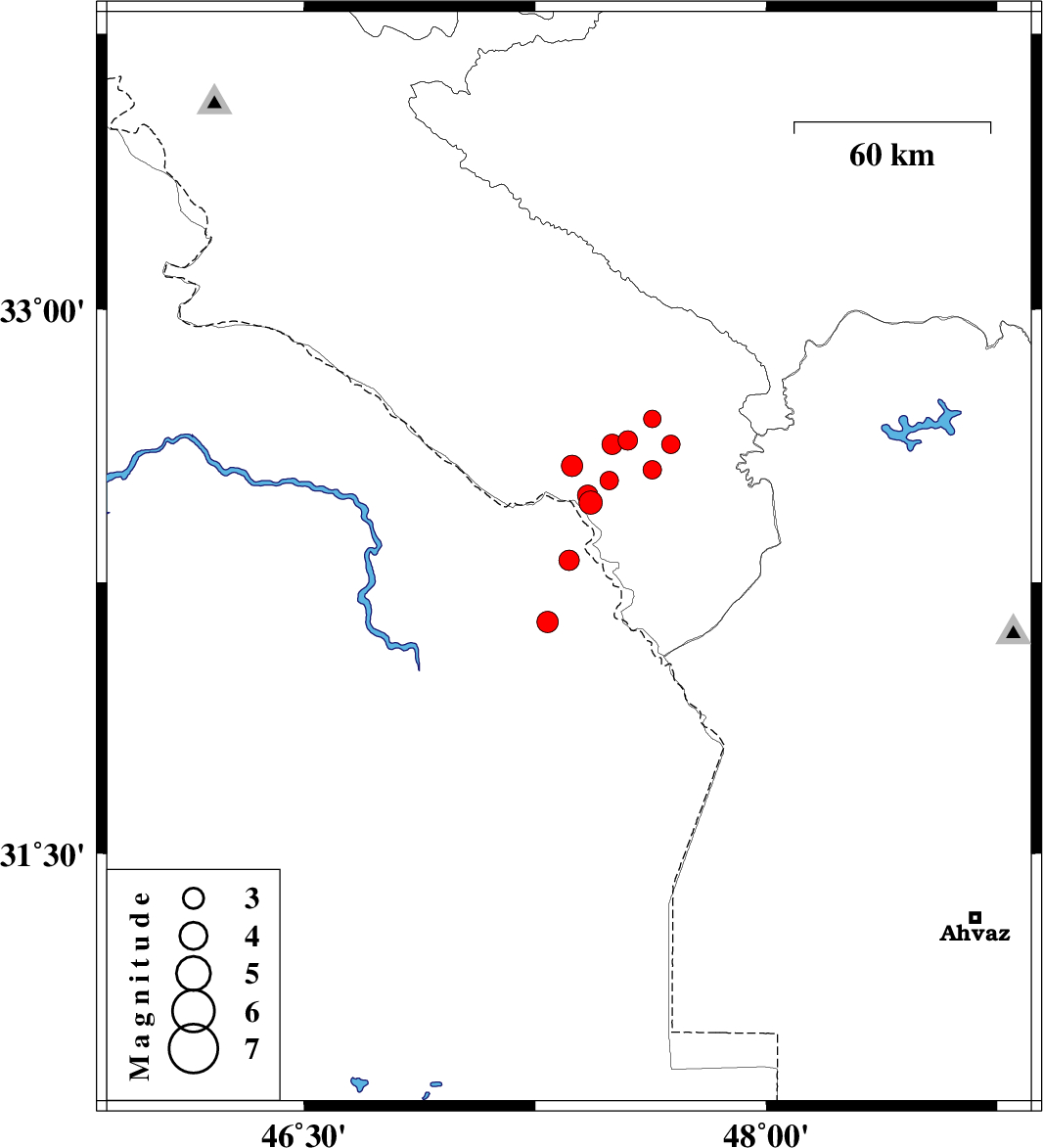 2008/09/17 19:11:57.6 23:41:57.6 32.6347.514 ML:2.9 23 km East of Dehloran, Ilam Province