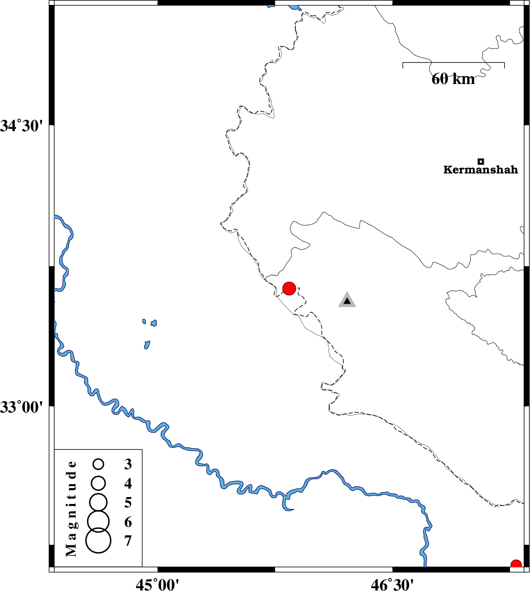 | 2008/09/14 | 01:06:31.8 | 05:36:31.8 | 32.14 | 47.29 | 15 | ML:3.1 | 61 km South of Dehloran, Ilam Province |