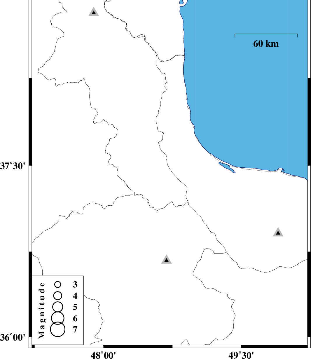| 2008/09/22 | 17:23:00.3 | 20:53:00.3 | 37.43 | 48.72 | 16 | ML:2.9 | 27 km South-East of Khalkhal, Ardebil Province |