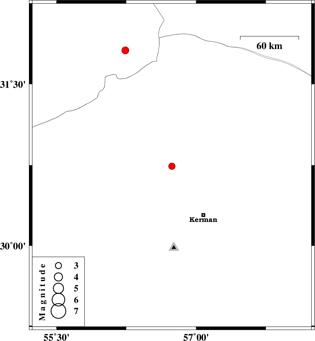 | 2008/09/20 | 07:02:27.7 | 11:32:27.7 | 31.81 | 56.24 | 15 | ML:3.5 | 81 km North-West of Ravar, Kerman Province |