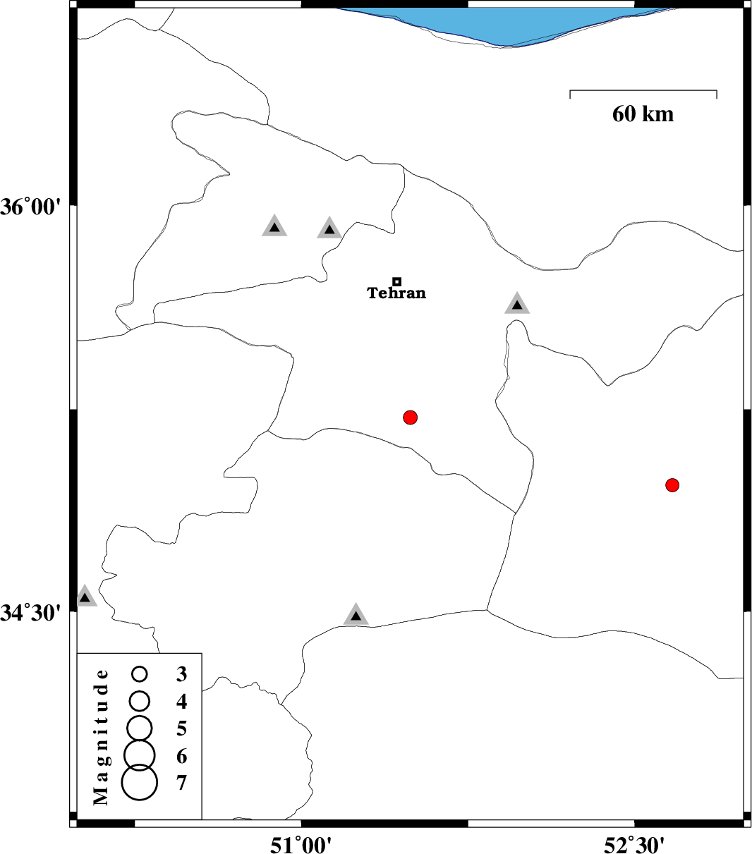 2008/09/24 | 19:35:32.3 | 23:05:32.3 | 34.97 | 52.67 | 46 | ML:2.7 | 41 km South-East of Garmsar, Semnan Province |