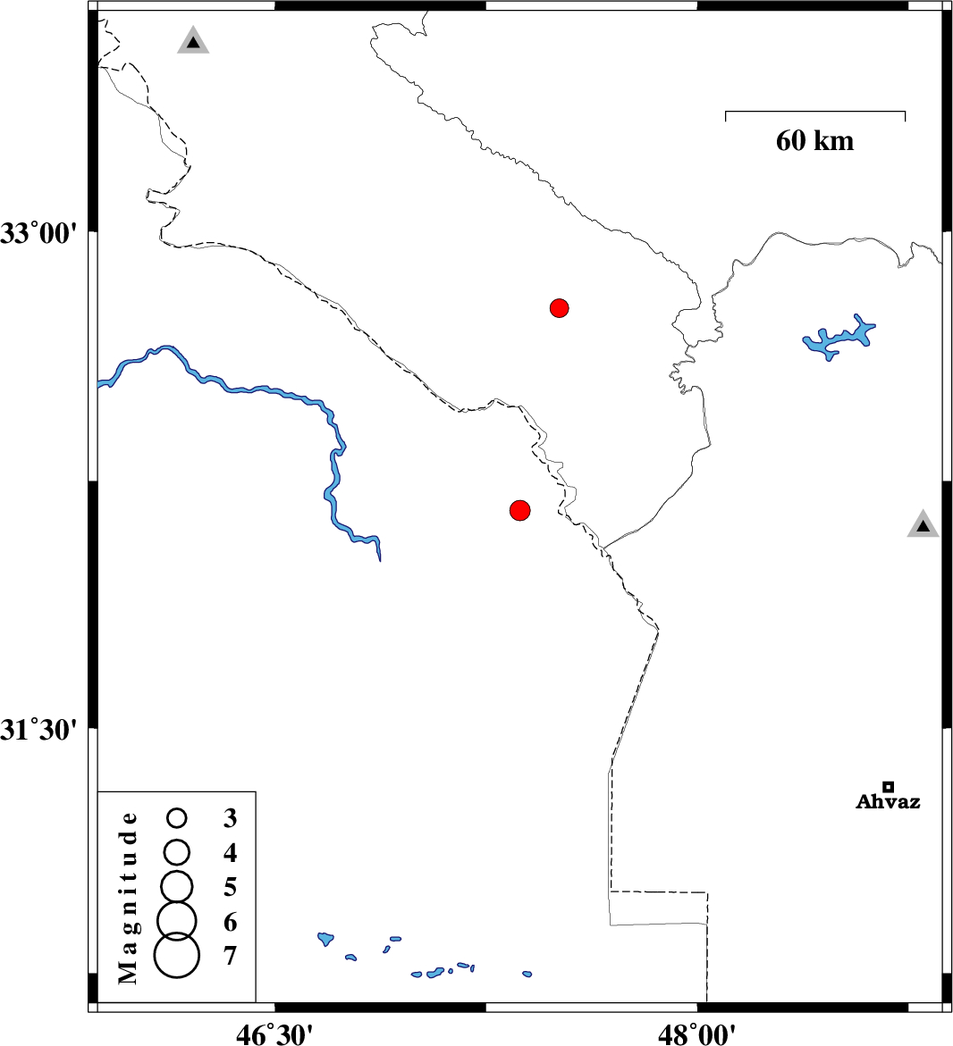 | 2008/09/29 | 14:43:44.3 | 18:13:44.3 | 32.16 | 47.37 | 14 | ML:3.2 | 60 km South-East of Dehloran, Ilam Province | ||