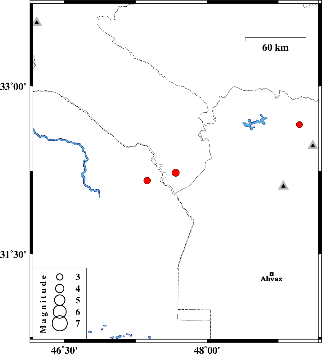 | 2008/09/29 | 14:43:44.3 | 18:13:44.3 | 32.16 | 47.37 | 14 | ML:3.2 | 60 km South-East of Dehloran, Ilam Province | ||