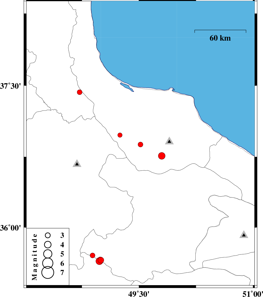 | 2008/09/13 | 19:24:12.0 | 23:54:12.0 | 36.76 | 49.8 | 28 | ML:4.1 | 34 km East of Rudbar, Gilan Province |