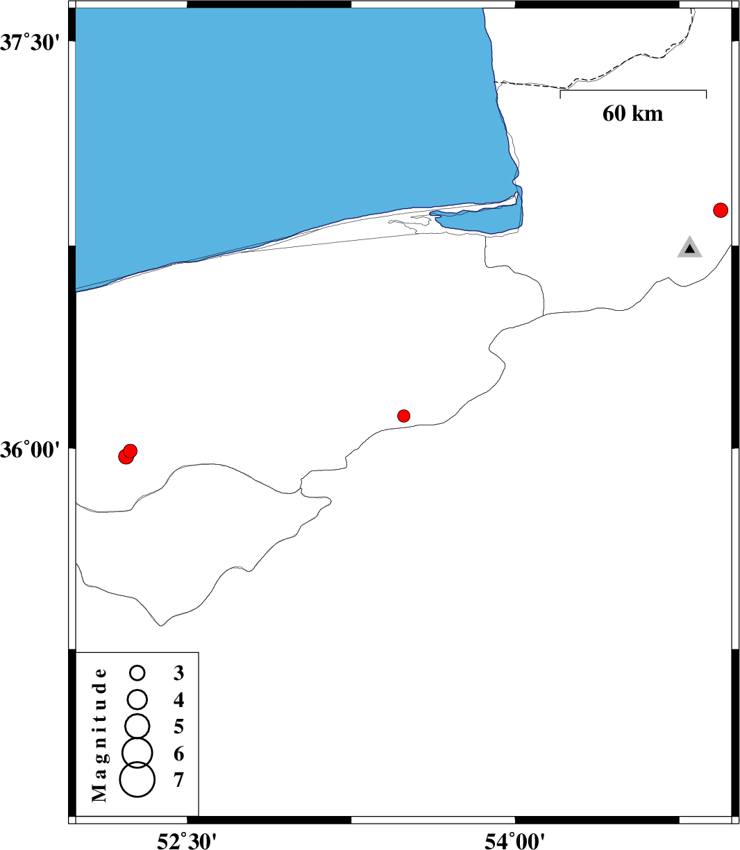 | 2008/10/03 | 04:52:34.1 | 08:22:34.1 | 36.88 | 54.94 | 15 | ML:2.9 | 7 km Ali Abad, Golestan Province |