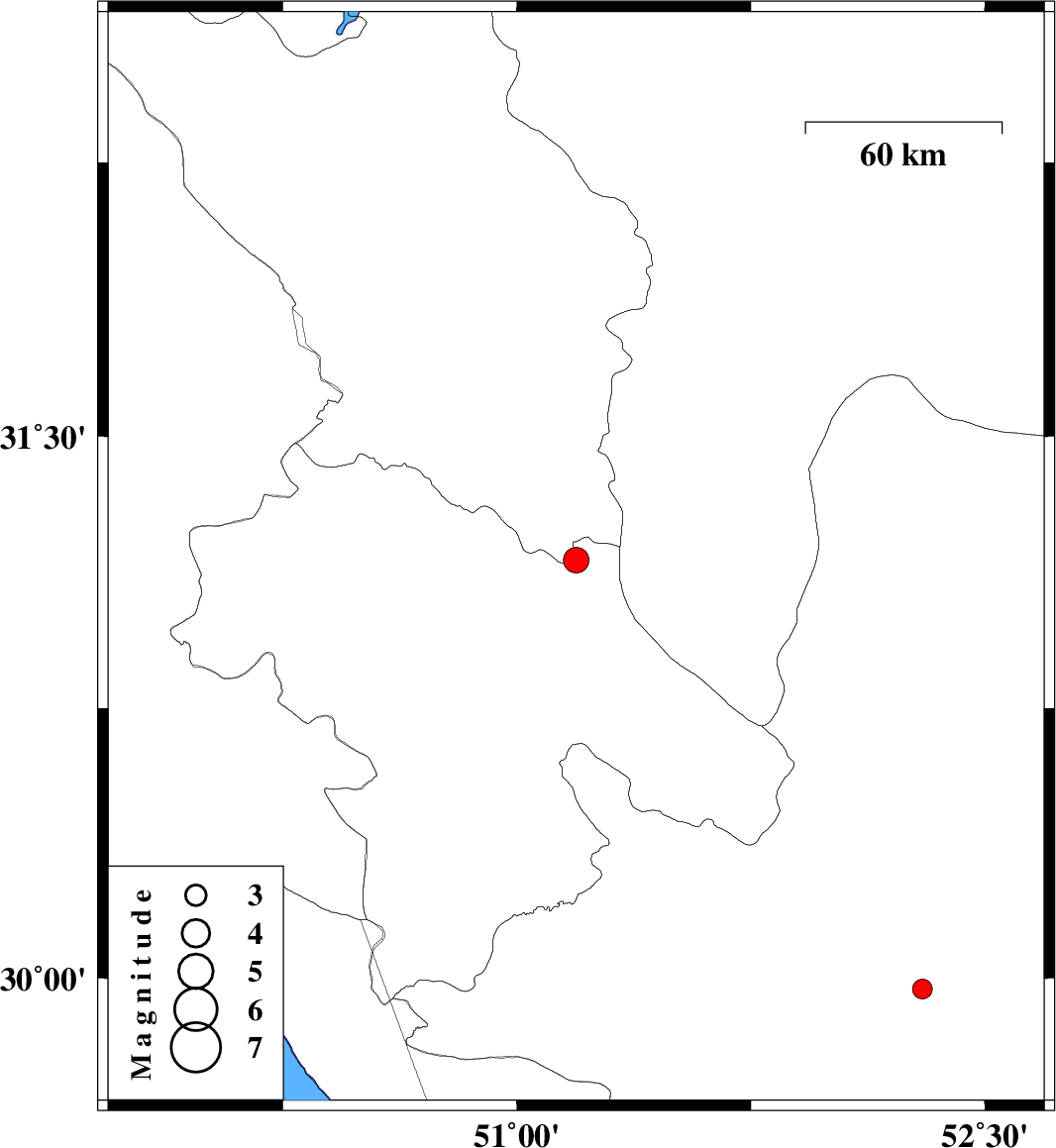| 2008/10/11 | 06:26:46.7 | 09:56:46.7 | 31.16 | 51.19 | 15 | ML:3.6 | 41 km North-West of Sisakht, Kohkiluieh va boyerahmad Province | ||