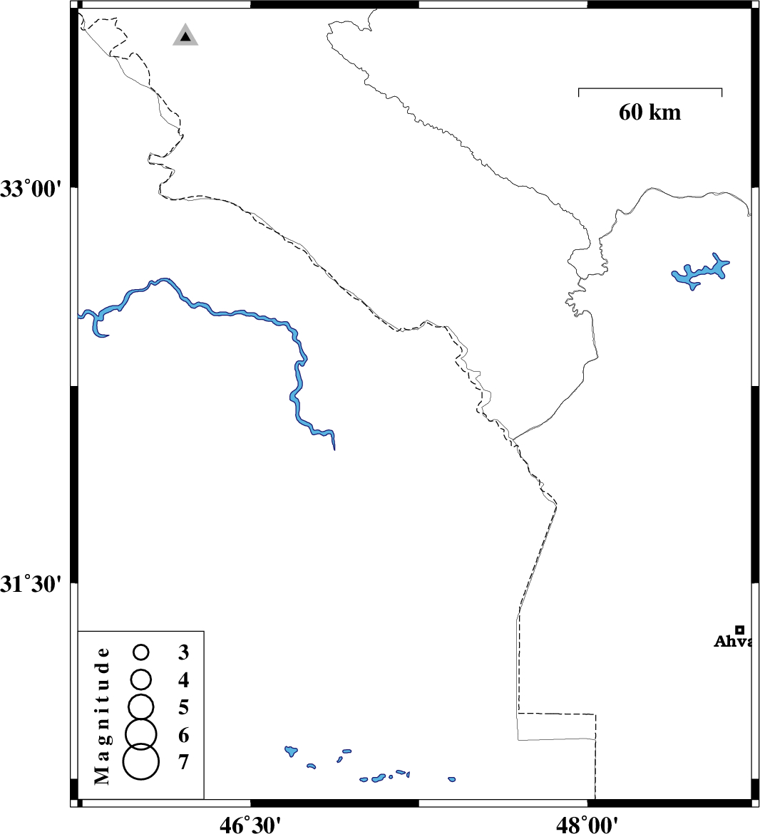 | 2008/10/18 | 23:50:06.1 | 03:20:06.1 | 32.17 | 47.23 | 37 | ML:3.8 | 57 km South of Dehloran, Ilam Province |