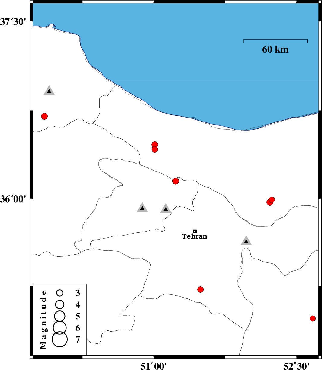 2008/10/04 | 12:57:38.9 | 16:27:38.9 | 35.97 | 52.22 | 8 | ML:3.1 | 31 km North-East of Damavand, Tehran Province | ||