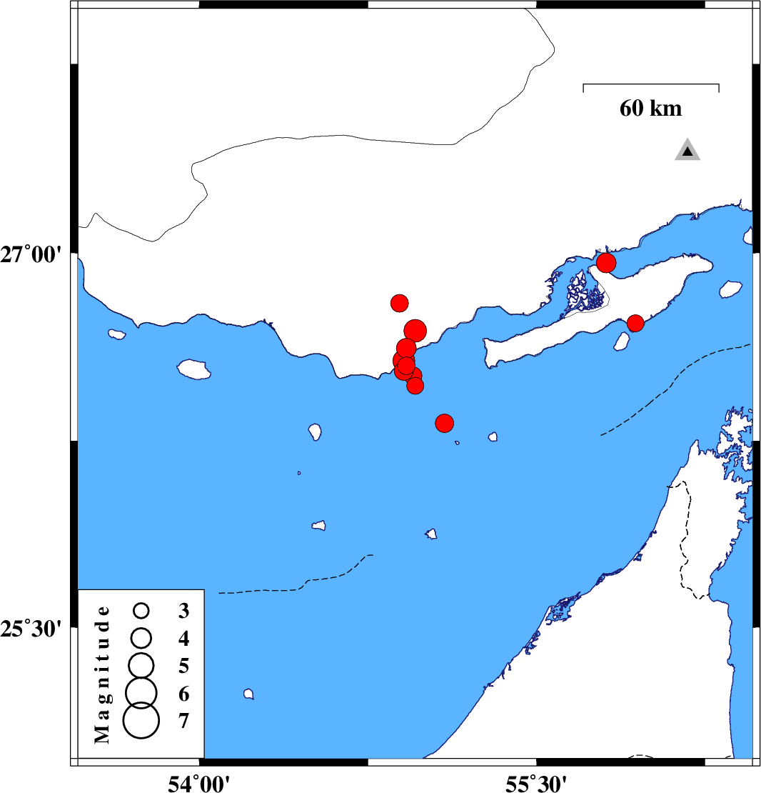 2008/10/22 09:12:12.6 12:42:12.6 26.9655.817 ML:3.9 Persian Gulf, 45 km West of Qeshm