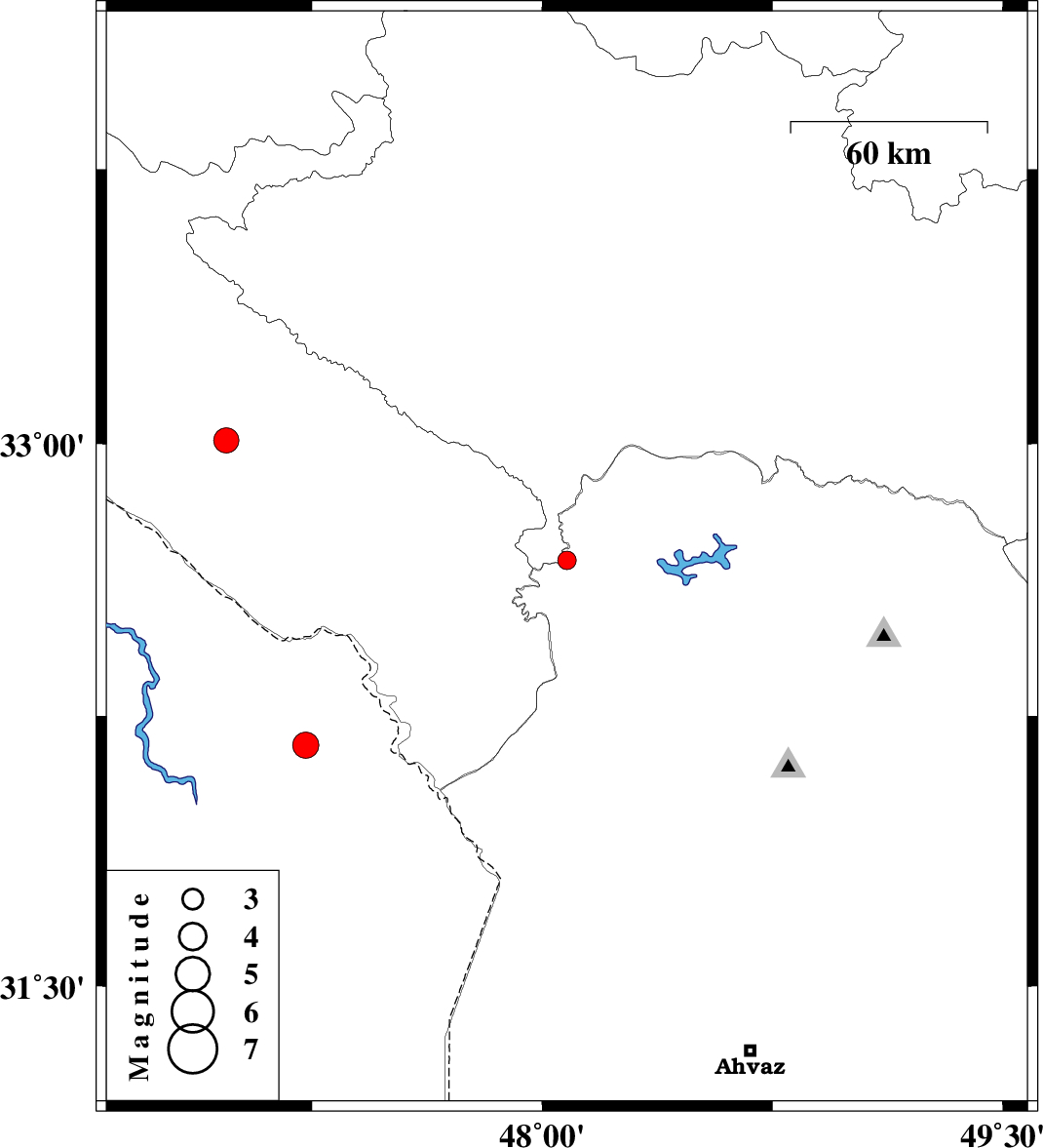 | 2008/10/18 | 23:50:06.1 | 03:20:06.1 | 32.17 | 47.23 | 37 | ML:3.8 | 57 km South of Dehloran, Ilam Province |