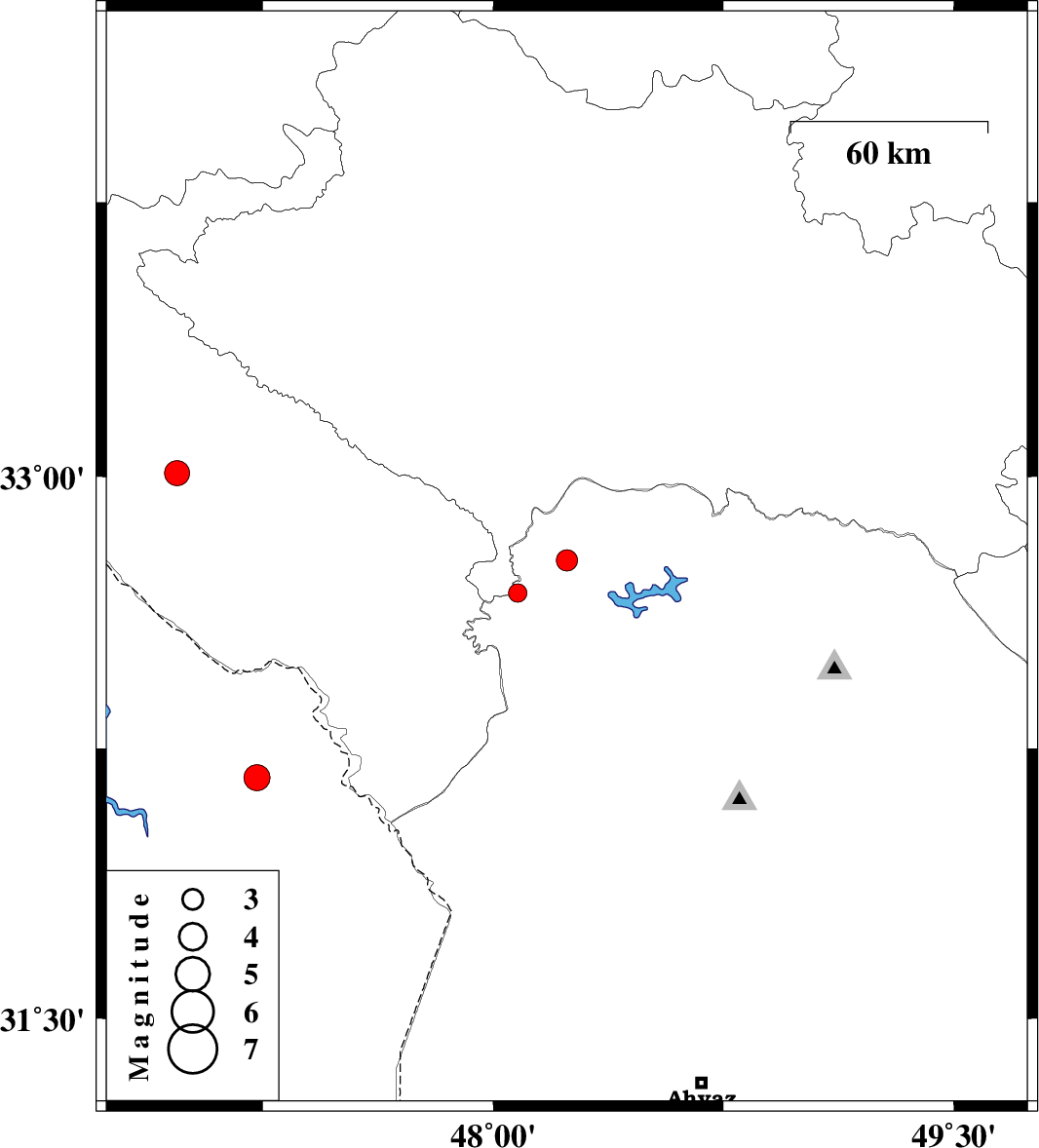 | 2008/10/24 | 05:50:31.1 | 09:20:31.1 | 32.77 | 48.24 | 14 | ML:3.1 | 35 km North-West of Andimeshk, Khoozestan Province | ||