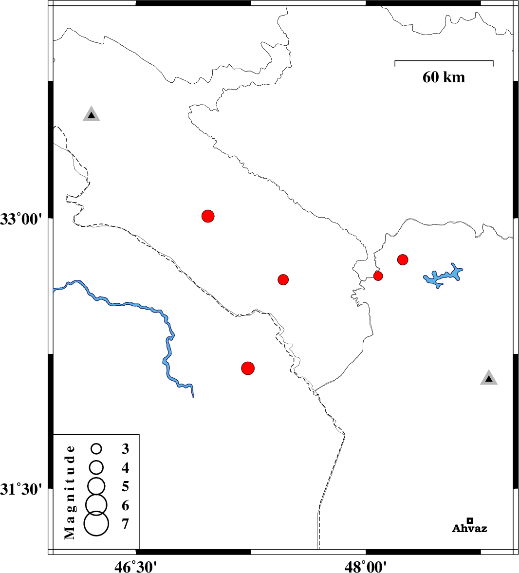 | 2008/10/18 | 23:50:06.1 | 03:20:06.1 | 32.17 | 47.23 | 37 | ML:3.8 | 57 km South of Dehloran, Ilam Province |