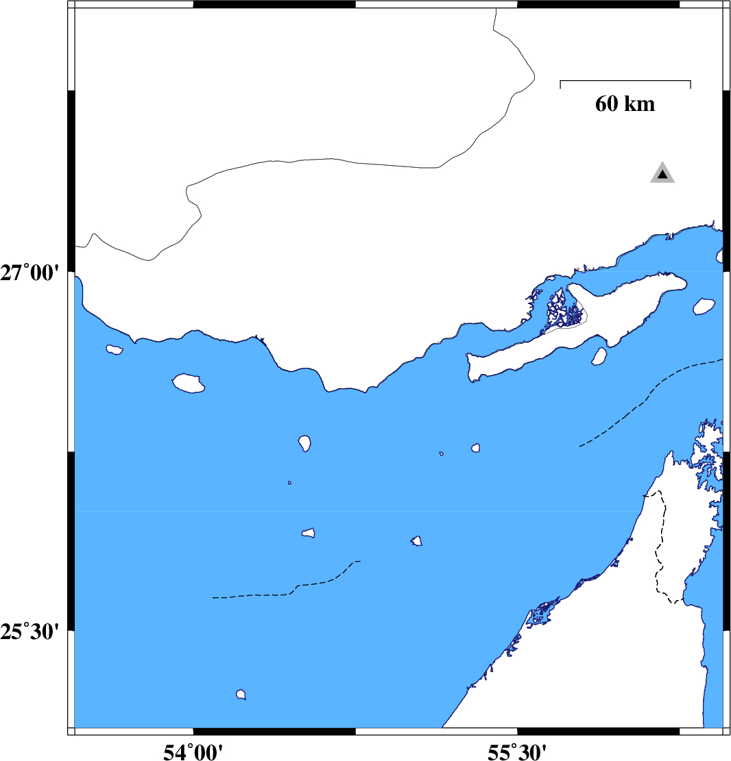 2008/10/21 13:11:05.1 16:41:05.1 26.3255.0946 ML:3.7 Persian Gulf, 32 km South-East of Bandar-e lengeh