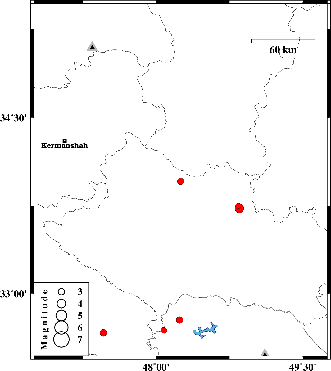 | 2008/10/23 | 12:00:22.1 | 15:30:22.1 | 33.01 | 46.97 | 14 | ML:3.7 | 34 km South-West of Darreh Shahr, Ilam Province |