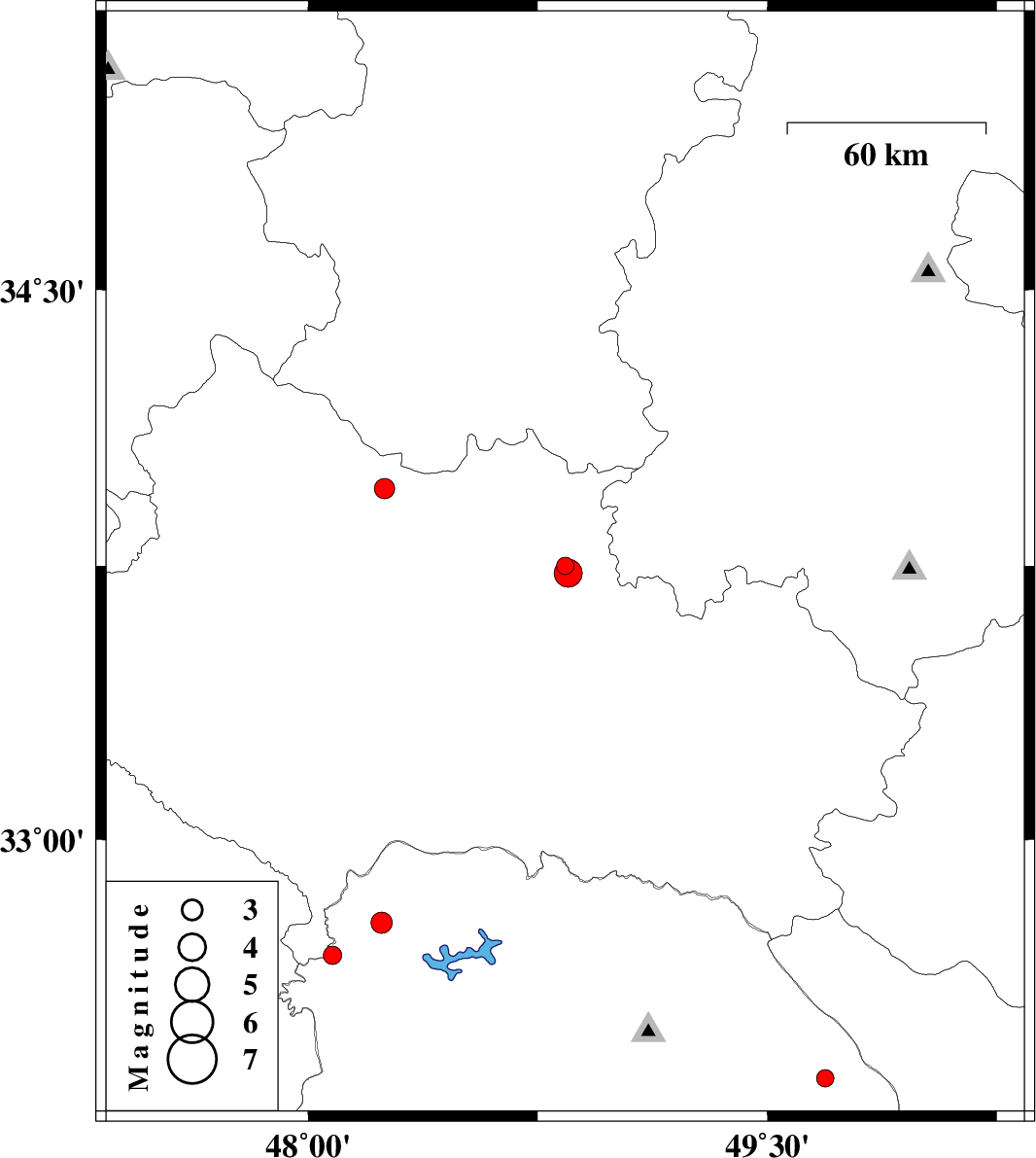 | 2008/10/29 | 10:30:00.4 | 14:00:00.4 | 33.73 | 48.85 | 14 | ML:4.1 | 20 km South of Borujerd, Lorestan Province | ||