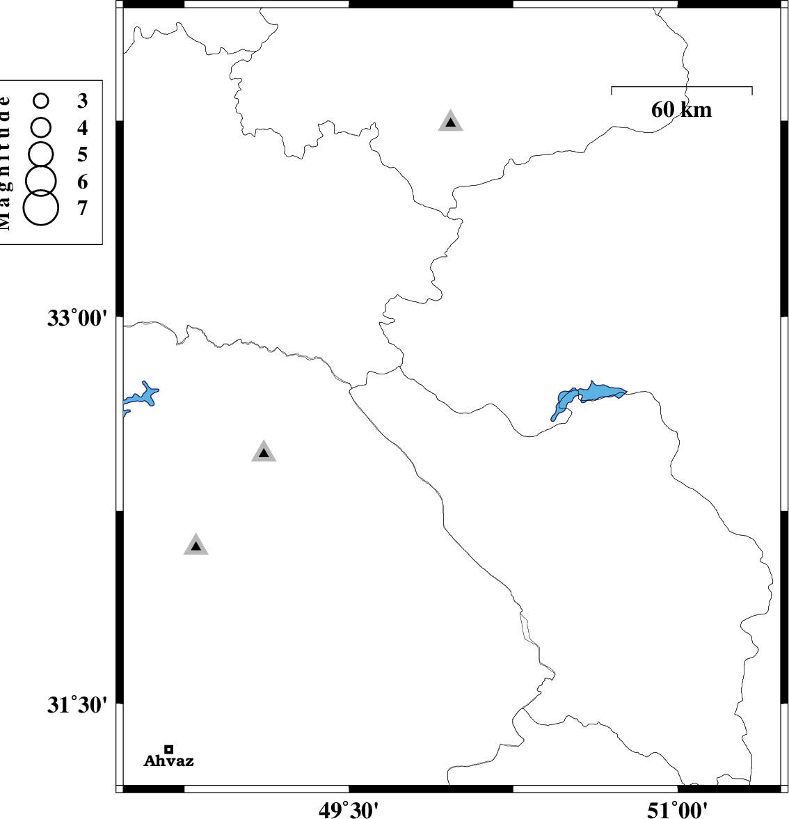 2008/10/27 | 19:46:03.3 | 23:16:03.3 | 32.02 | 49.05 | 14 | ML:3 | 18 km East of Shushtar, Khoozestan Province |