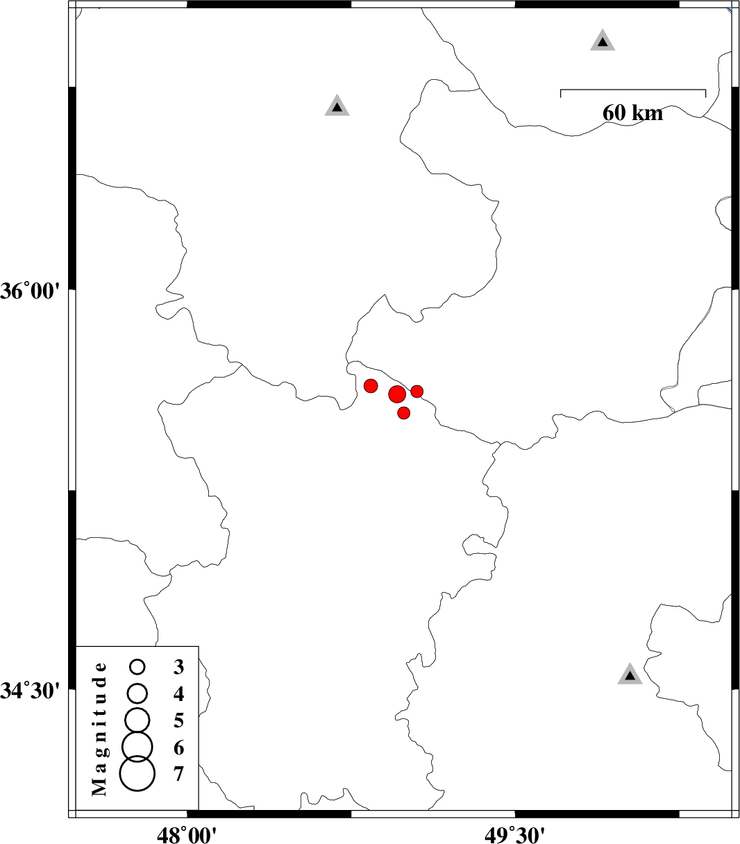 | 2008/10/30 | 16:05:45.4 | 19:35:45.4 | 35.61 | 48.96 | 16 | ML:3.5 | 26 km North of Razan, Hamedan Province | ||