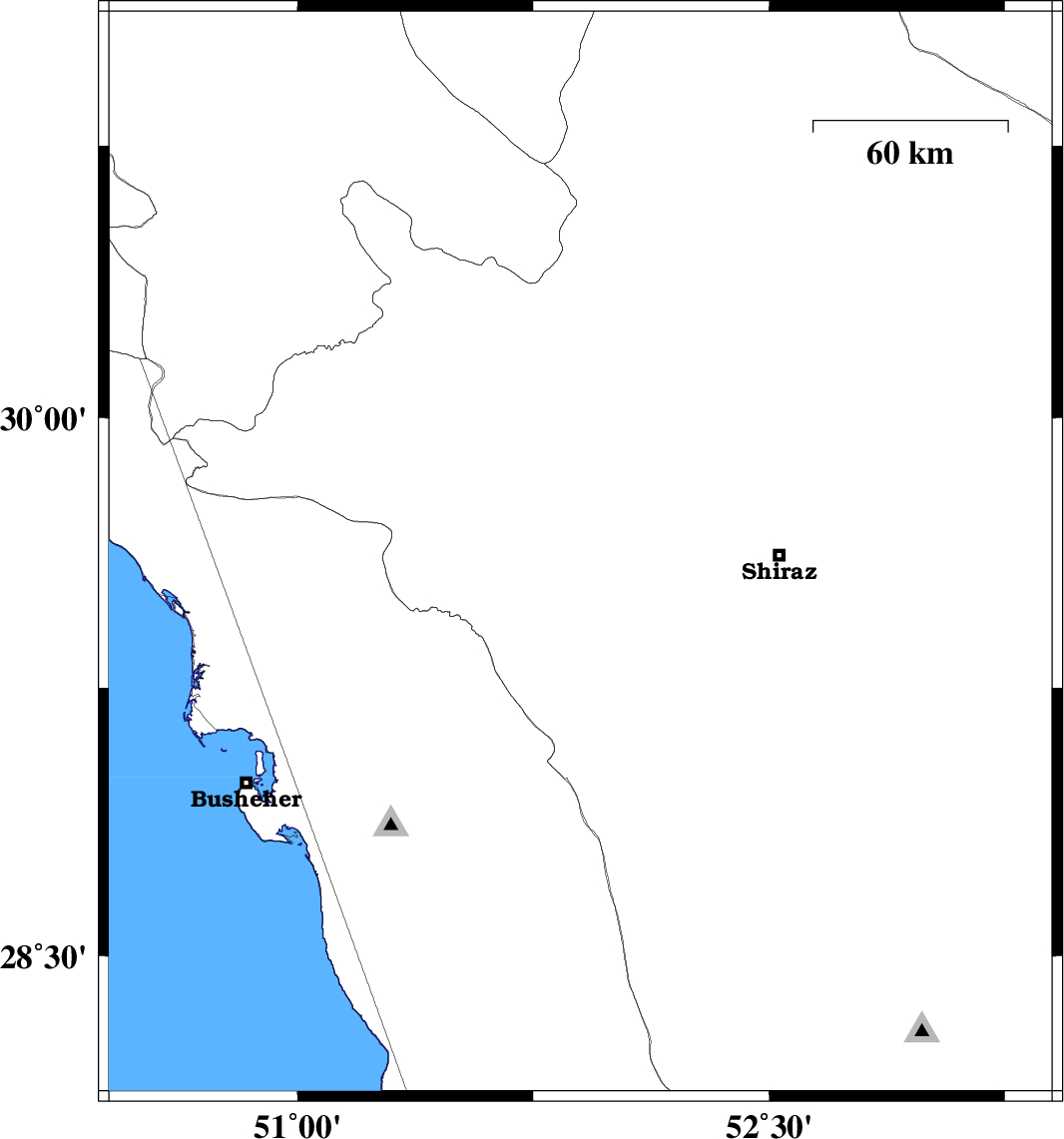 2008/11/02 | 19:32:10.8 | 23:02:10.8 | 29.44 | 51.78 | 13 | ML:3.1 | 23 km South-East of Kazerun, Fars Province | ||