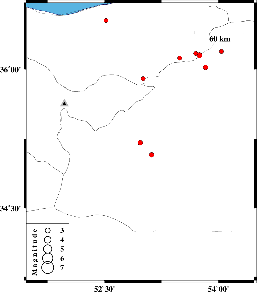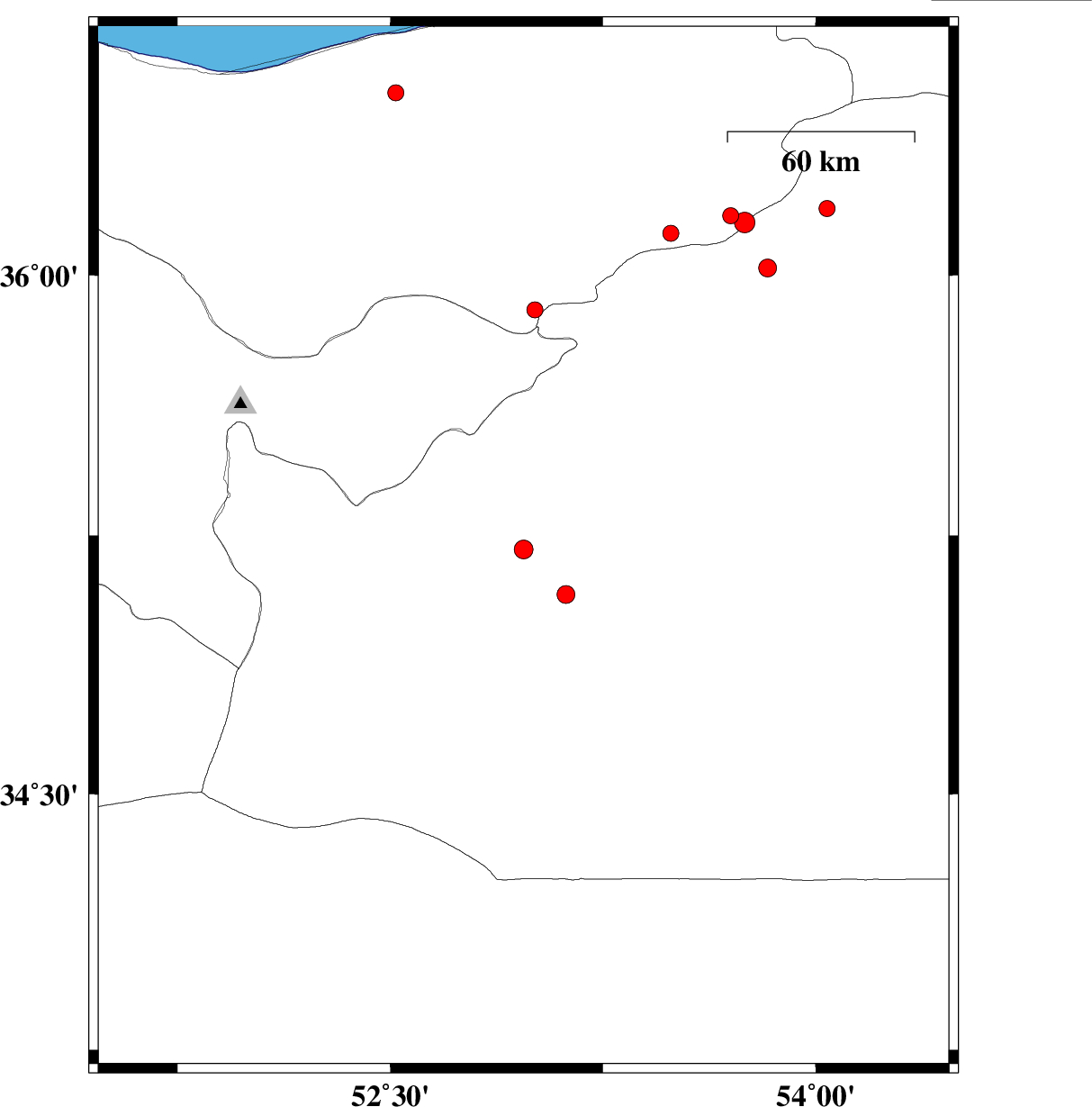 | 2008/10/10 | 01:56:25.0 | 05:26:25.0 | 36.12 | 53.49 | 14 | ML:2.6 | 38 km East of Pol-E-Sefid, Mazandaran Province |