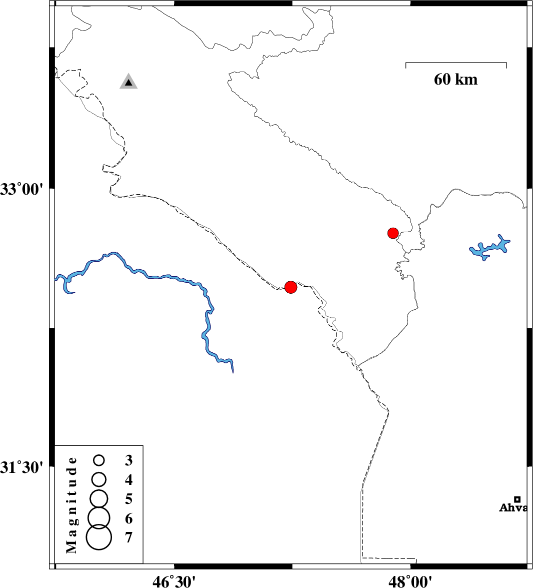 2008/11/07 | 08:39:25.2 | 12:09:25.2 | 32.76 | 47.89 | 14 | ML:3.1 | 44 km South-East of Abdanan, Ilam Province |