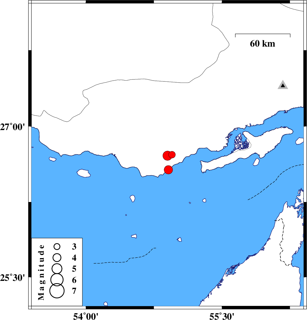 | 2008/11/11 | 15:38:57.2 | 19:08:57.2 | 26.71 | 54.9 | 14 | ML:4.6 | 20 km North of Bandar-e lengeh, Hormozgan Province | ||