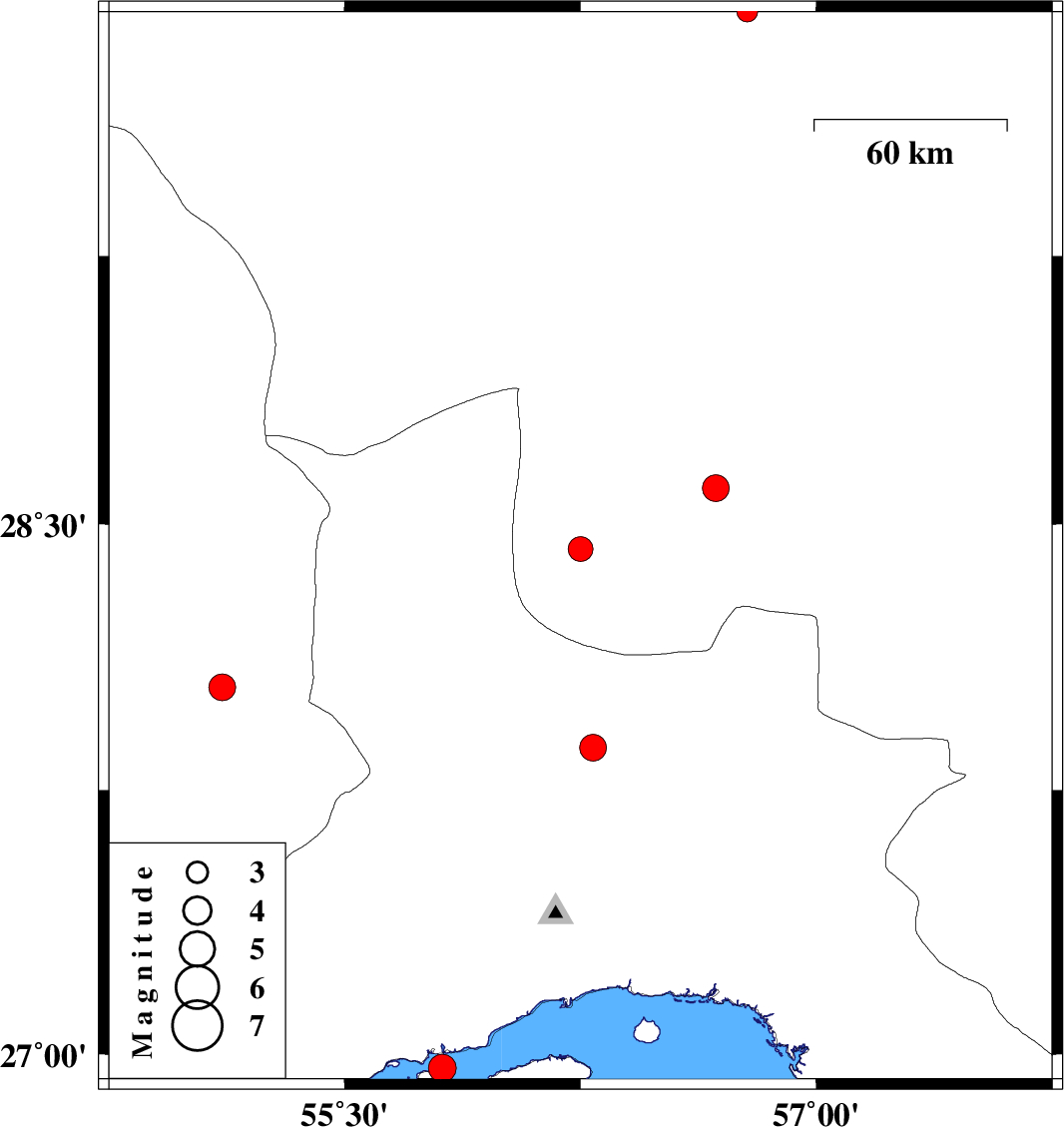 | 2008/10/27 | 11:25:40.3 | 14:55:40.3 | 28.04 | 55.11 | 15 | ML:3.8 | 83 km South-West of Hajiabad, Hormozgan Province | ||