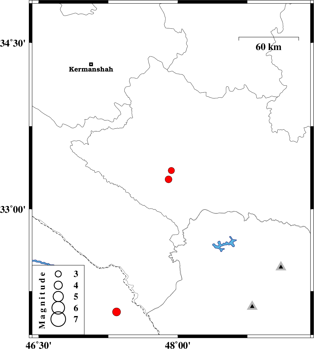 | 2008/11/23 | 06:59:52.3 | 10:29:52.3 | 33.27 | 47.9 | 37 | ML:3.4 | 21 km North-East of Pol-e dokhtar, Lorestan Province | ||