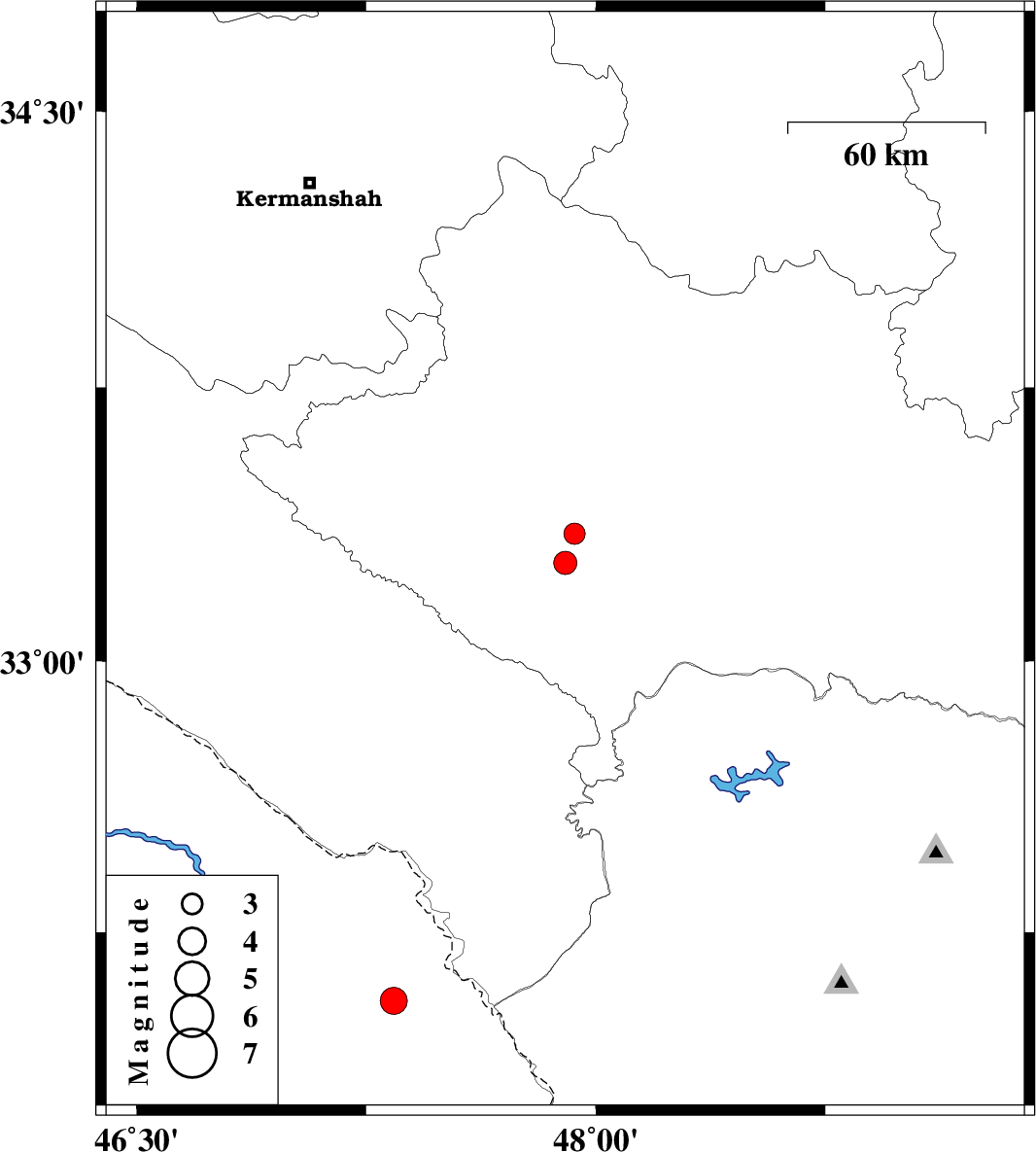 | 2008/11/23 | 06:59:52.3 | 10:29:52.3 | 33.27 | 47.9 | 37 | ML:3.4 | 21 km North-East of Pol-e dokhtar, Lorestan Province | ||