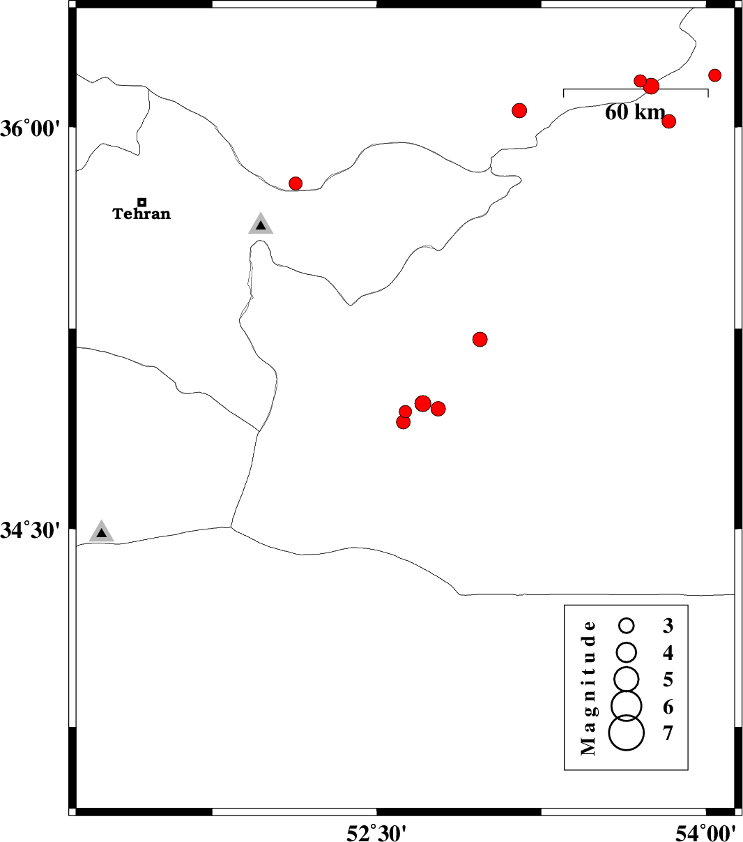 2008/10/30 | 22:33:40.3 | 02:03:40.3 | 36.19 | 54.04 | 14 | ML:2.6 | 27 km West of Damghan, Semnan Province |