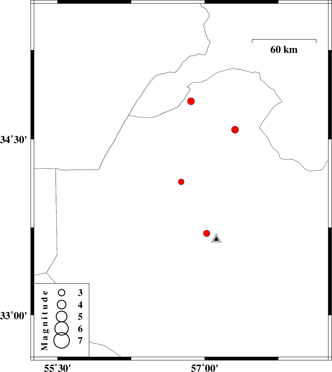 2008/11/29 03:41:46.3 07:11:46.3 34.5857.3116 ML:3.3 96 km South-West of Bardeskan, Khorasan(center) Province