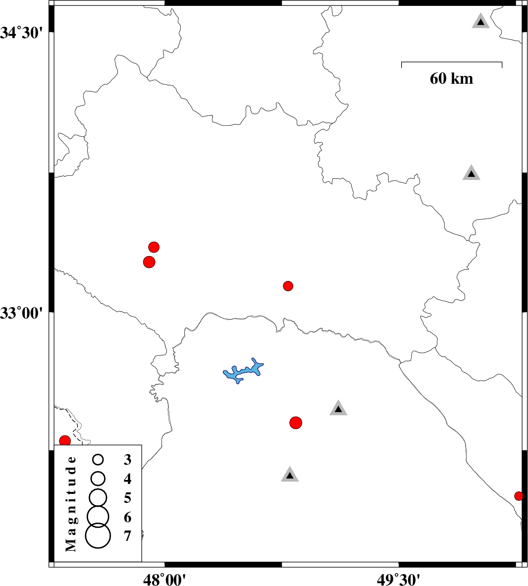 | 2008/11/23 | 06:59:52.3 | 10:29:52.3 | 33.27 | 47.9 | 37 | ML:3.4 | 21 km North-East of Pol-e dokhtar, Lorestan Province | ||