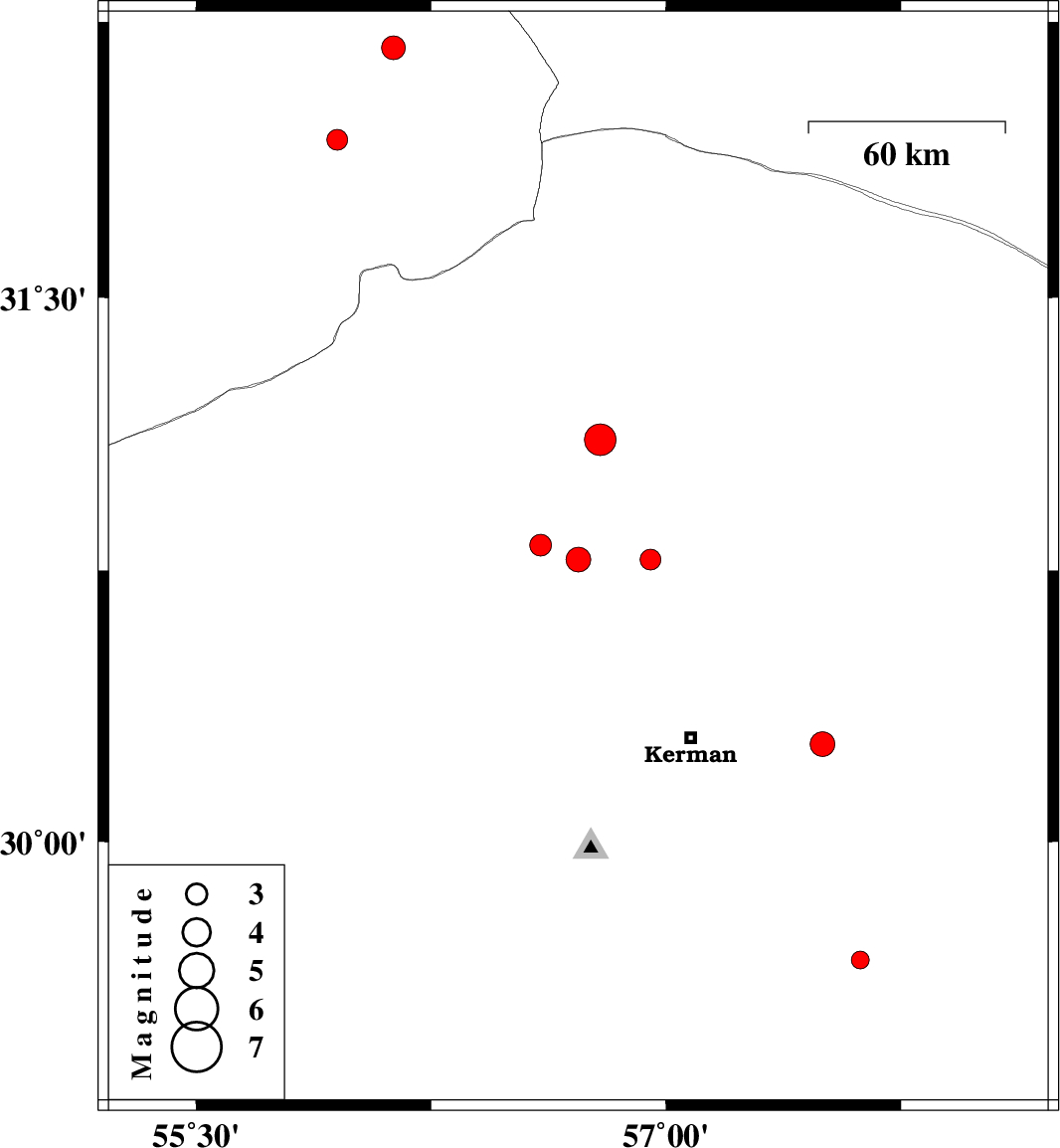 | 2008/12/09 | 18:50:59.9 | 22:20:59.9 | 29.67 | 57.62 | 18 | ML:2.6 | 86 km South-East of Kerman, Kerman Province | ||