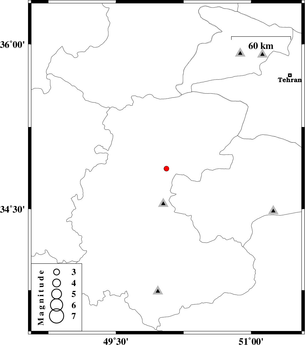 | 2008/12/12 | 05:04:03.0 | 08:34:03.0 | 34.87 | 50.06 | 17 | ML:2.5 | 20 km North of Tafresh, Markazi Province | ||
