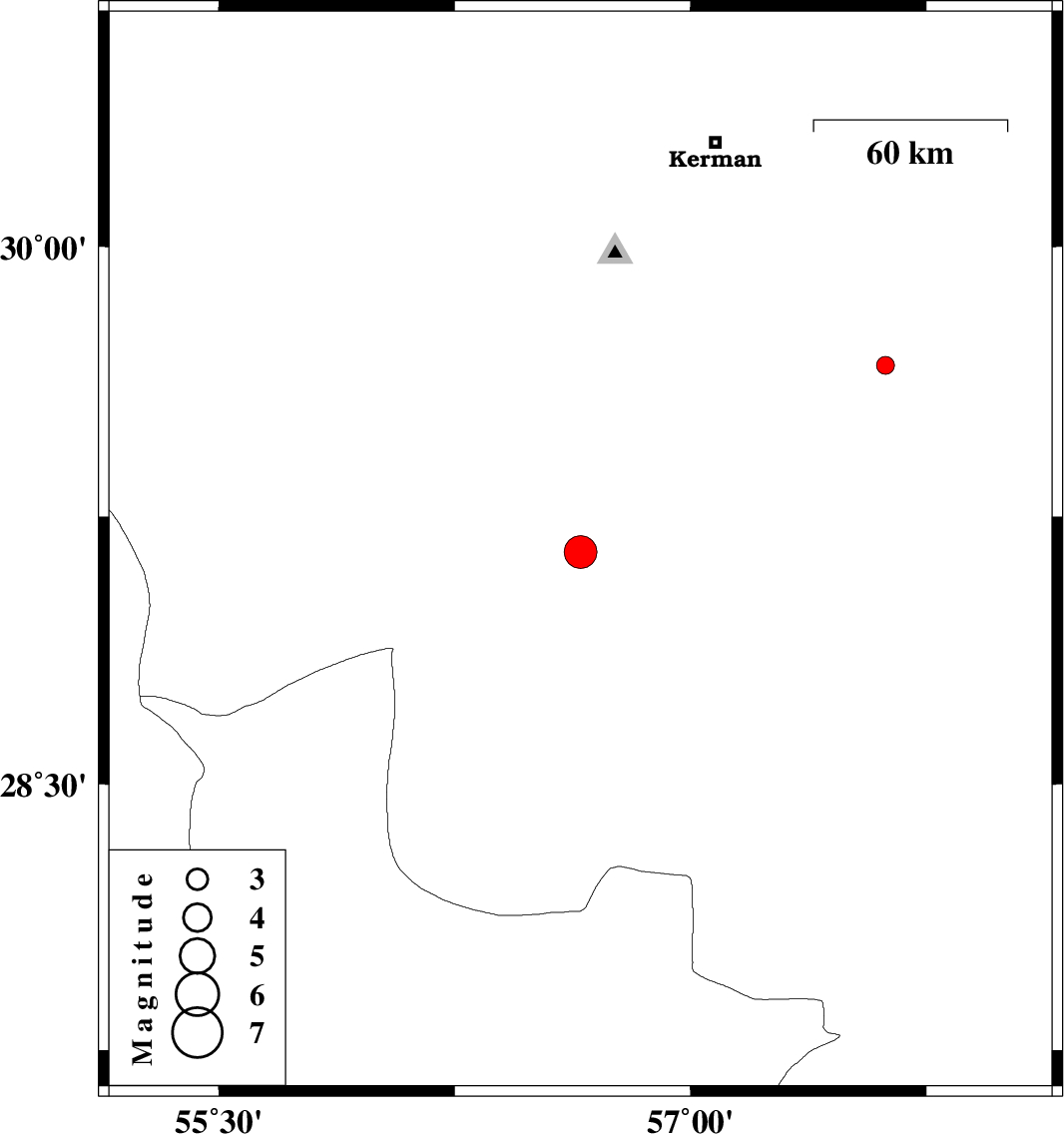 | 2008/12/09 | 18:50:59.9 | 22:20:59.9 | 29.67 | 57.62 | 18 | ML:2.6 | 86 km South-East of Kerman, Kerman Province |