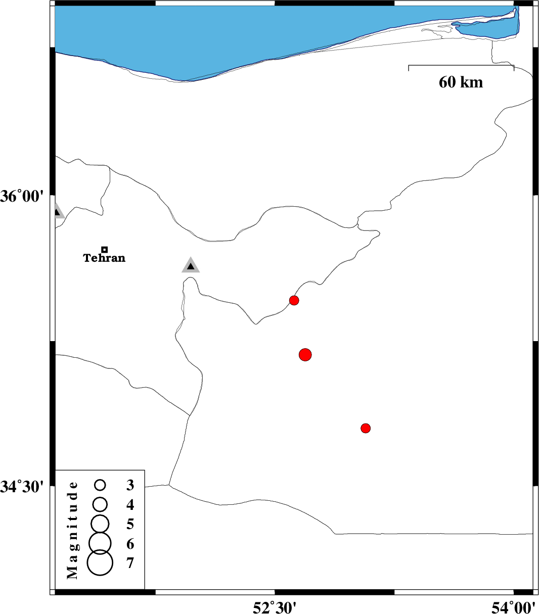 | 2008/12/19 | 19:38:31.0 | 23:08:31.0 | 35.46 | 52.62 | 14 | ML:2.7 | 35 km South-West of Firuzkuh, Tehran Province | ||
