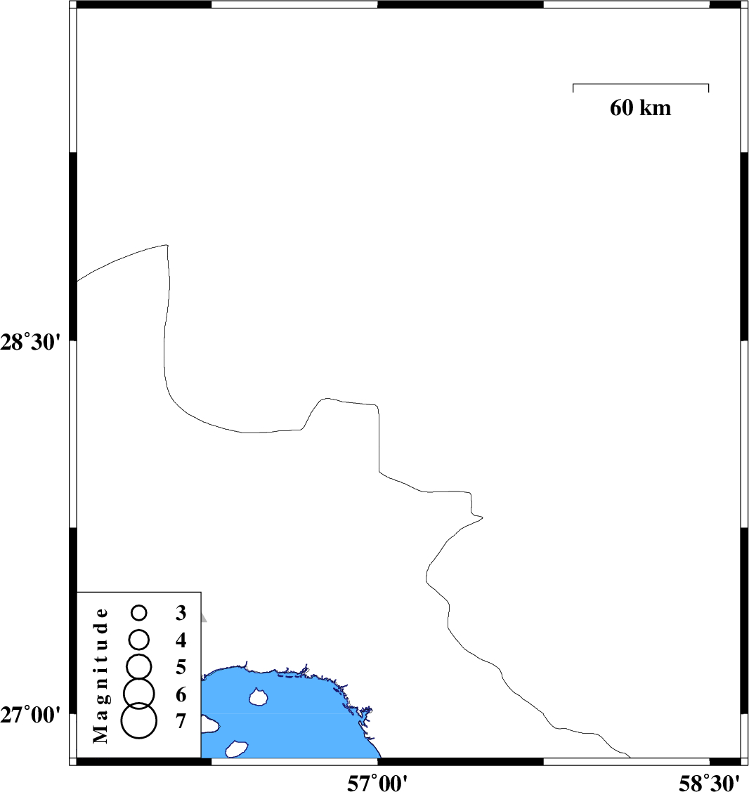| 2008/12/22 | 15:08:12.1 | 18:38:12.1 | 28.32 | 57.14 | 14 | ML:4.4 | 68 km North-West of Kahnuj, Kerman Province |