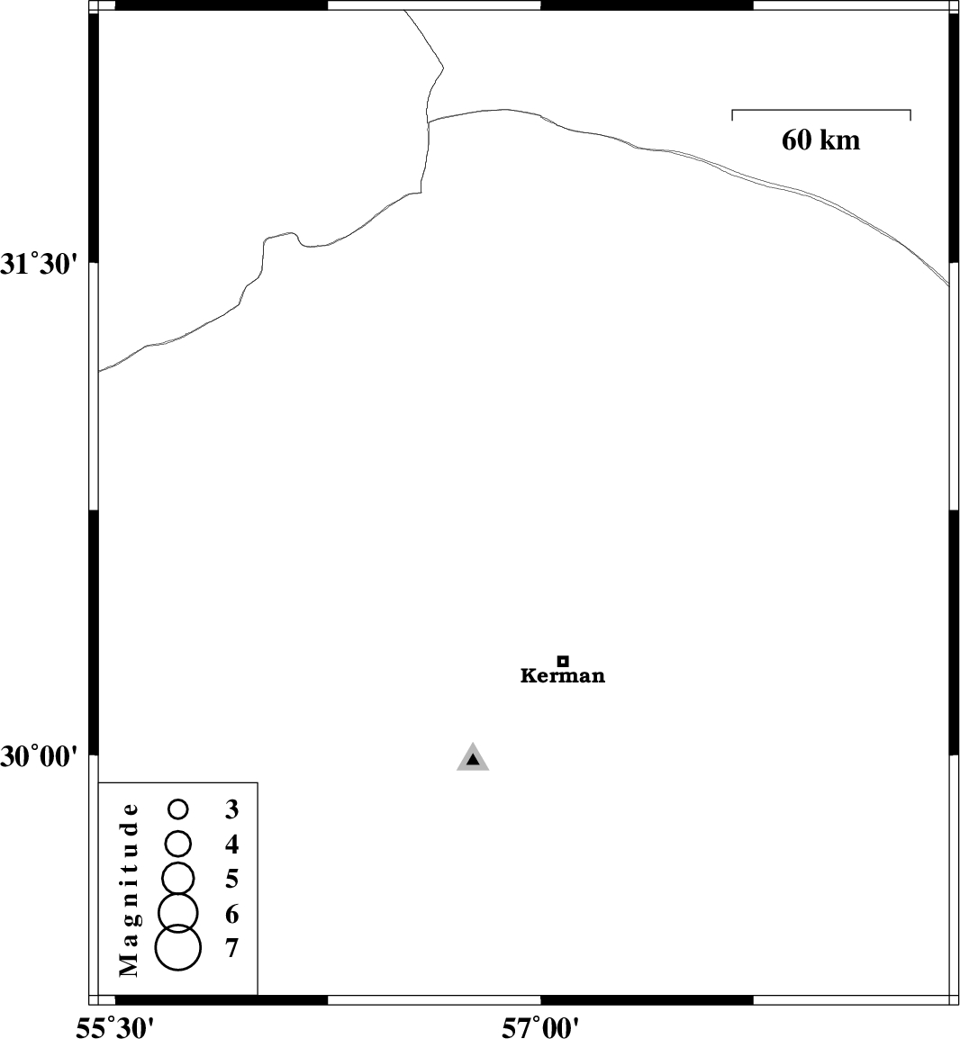 | 2009/01/01 | 09:51:40.1 | 13:21:40.1 | 30.76 | 56.94 | 14 | ML:3.2 | 35 km East of Zarand, Kerman Province |