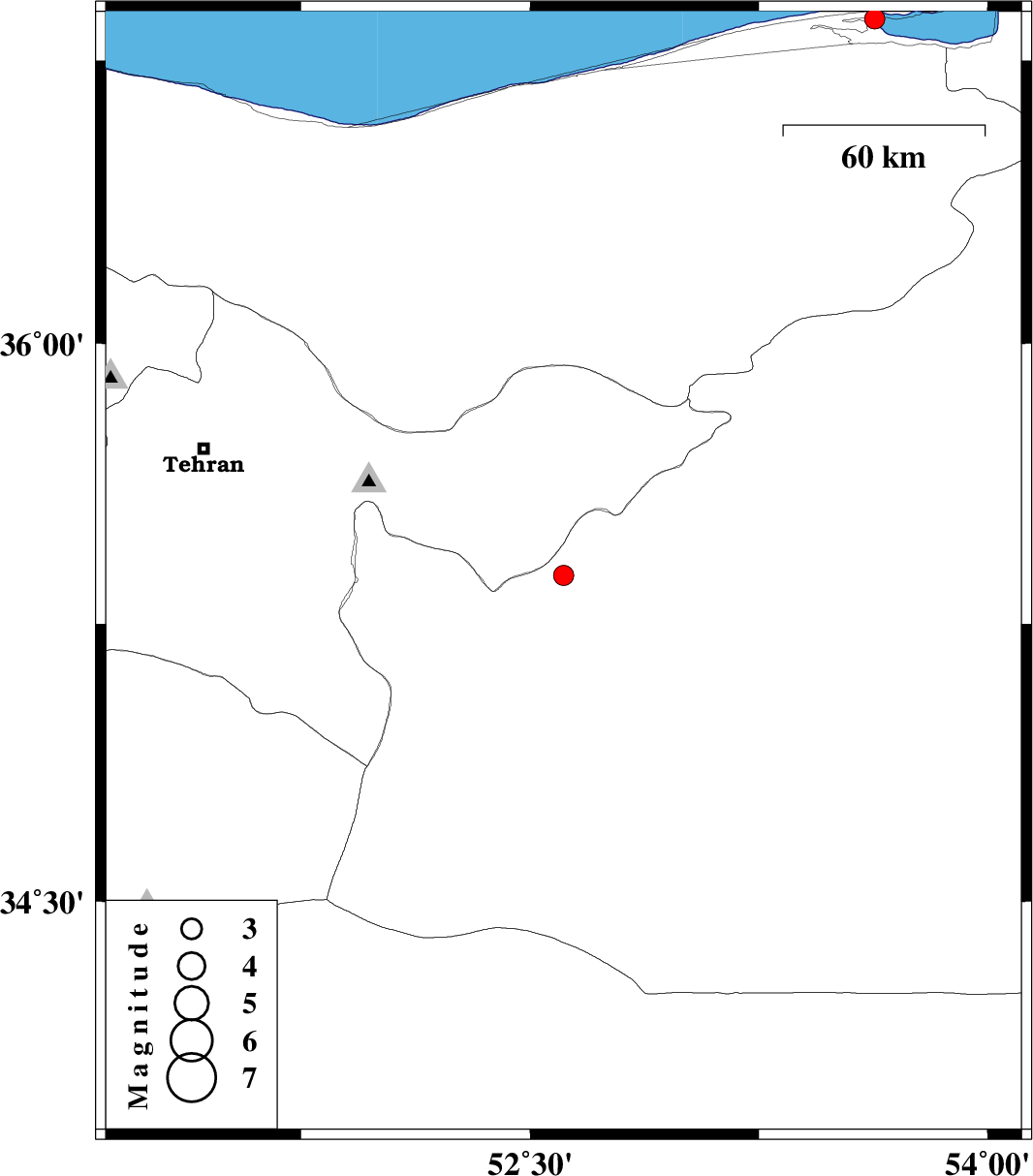 | 2008/12/27 | 03:15:17.9 | 06:45:17.9 | 36.86 | 53.63 | 15 | ML:3 | Caspian Sea, 20 km North of Behshahr |