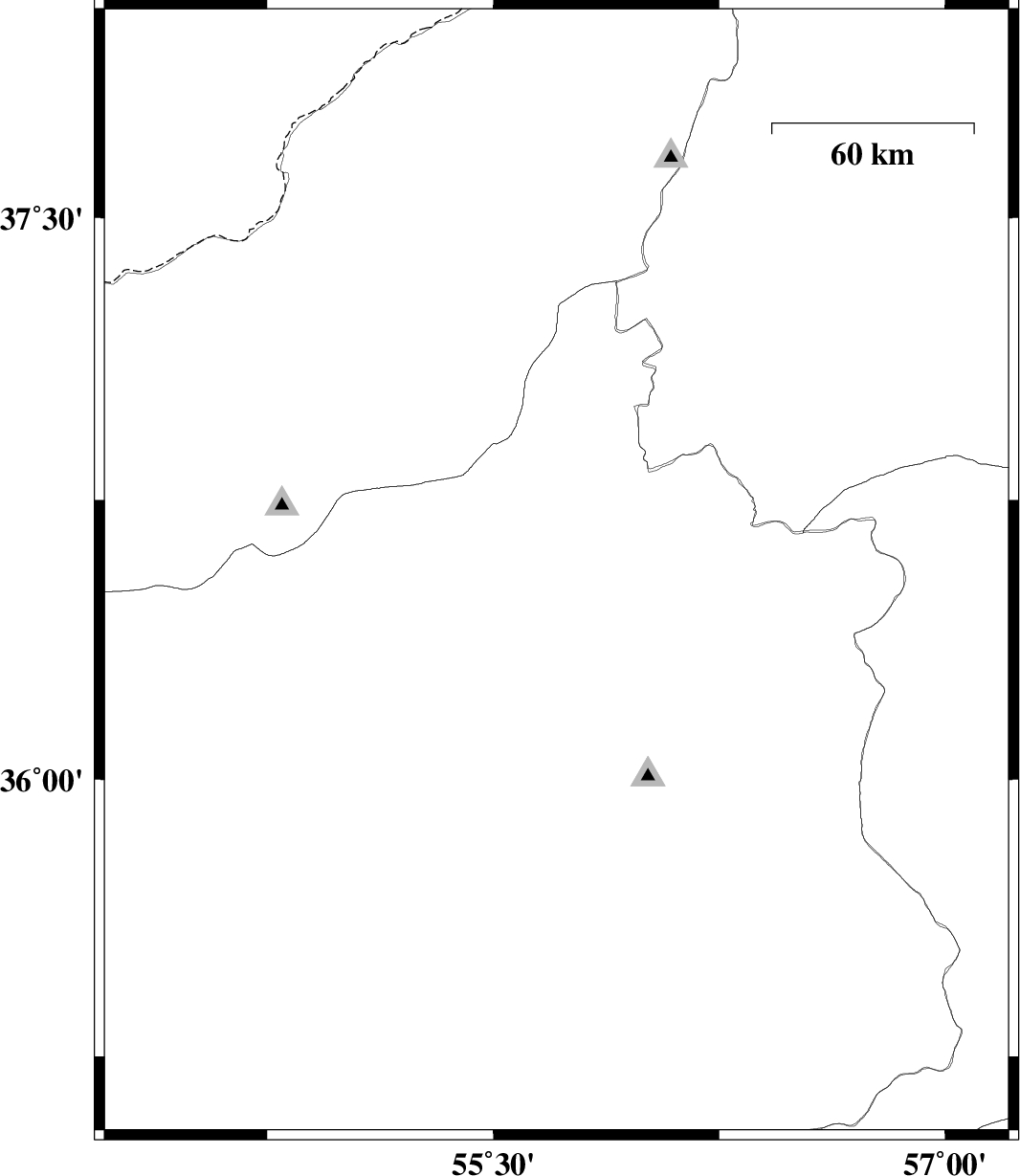 | 2009/01/03 | 15:08:45.7 | 18:38:45.7 | 36.59 | 55.75 | 14 | ML:3.4 | 69 km South-West of Jajarm, Khorasan(north) Province | ||