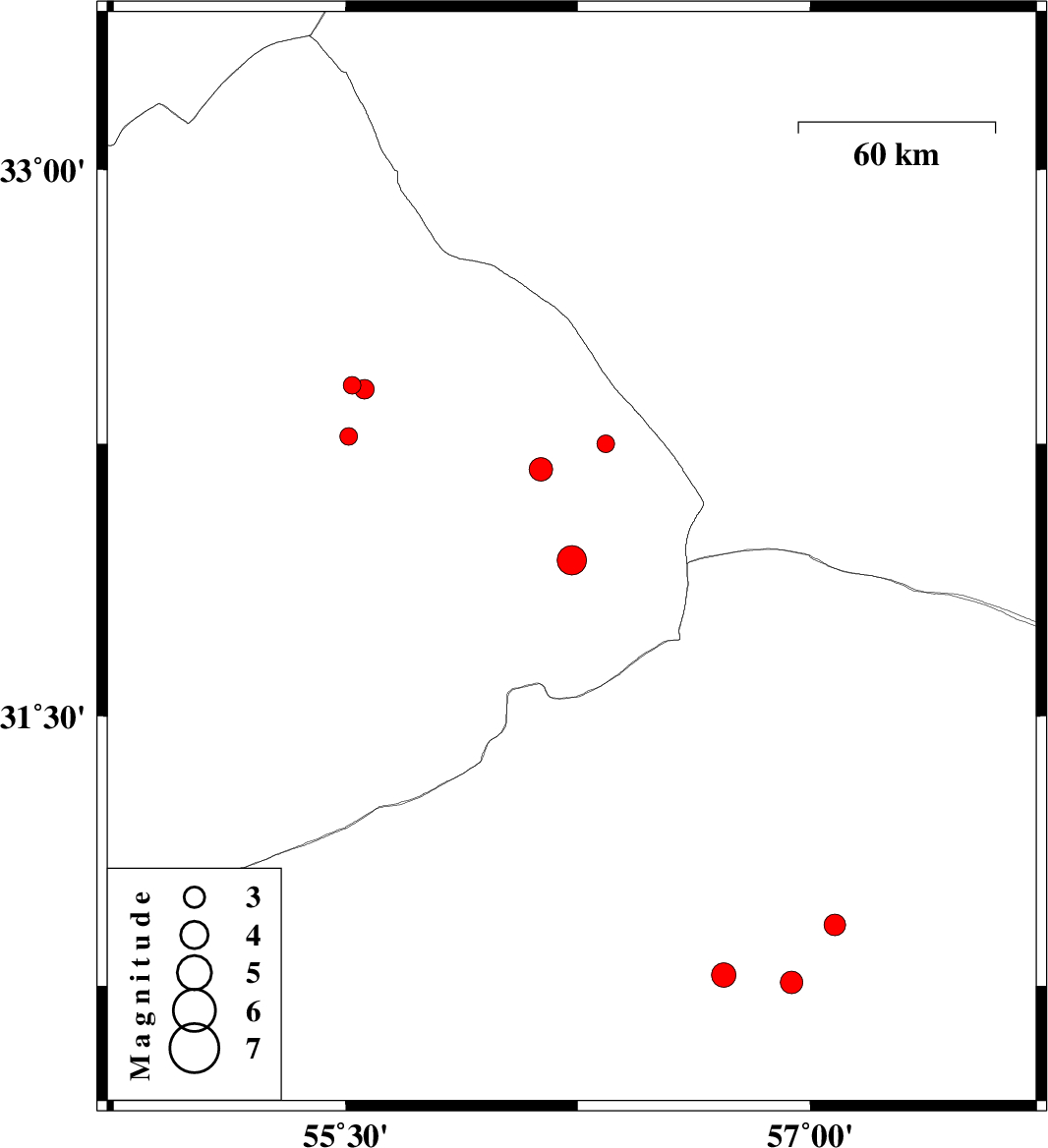 | 2008/12/22 | 12:00:40.4 | 15:30:40.4 | 32.41 | 55.52 | 14 | ML:2.5 | 90 km North-East of Bafq, Yazd Province | ||