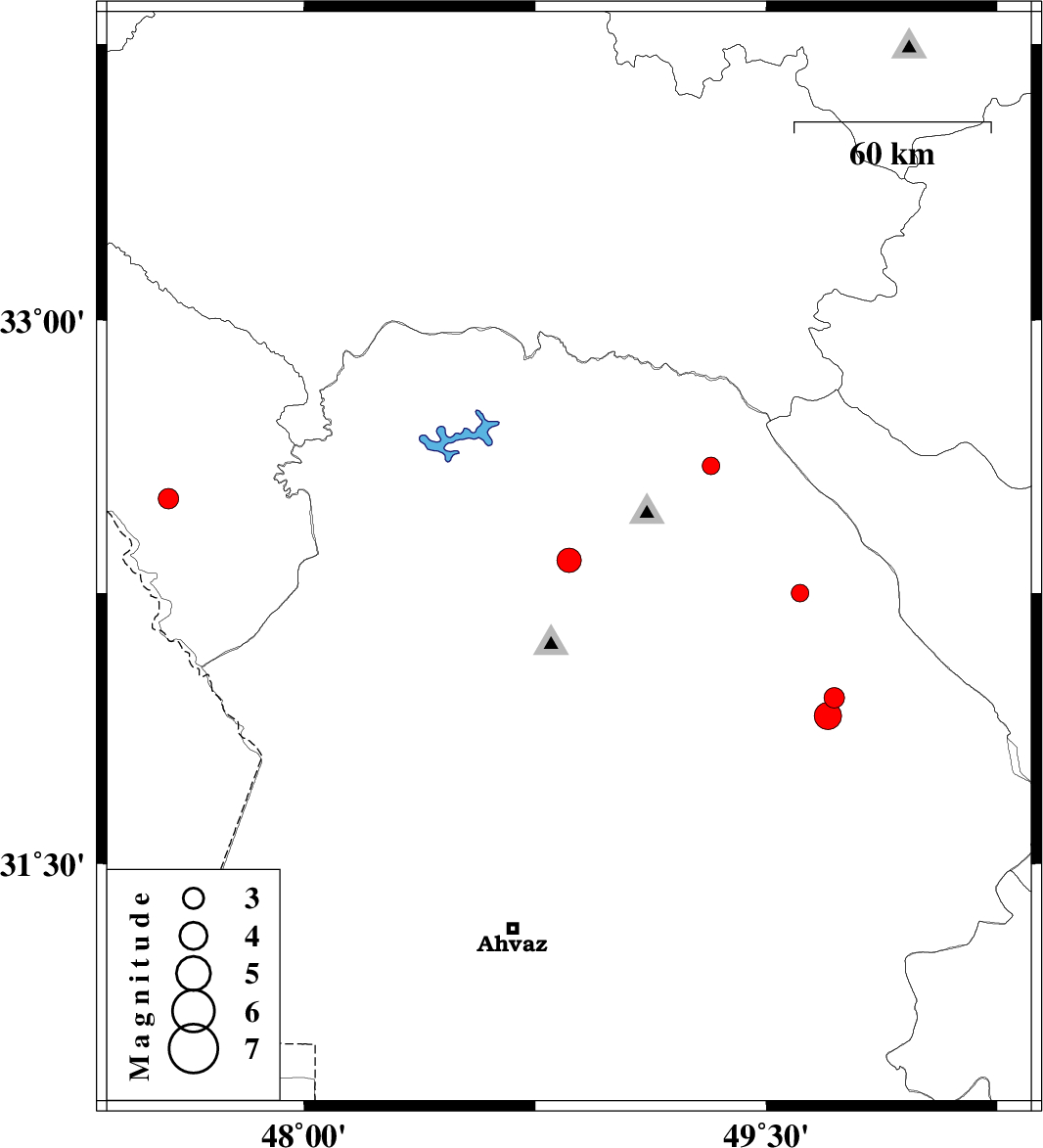 | 2008/12/14 | 03:48:43.2 | 07:18:43.2 | 32.25 | 49.61 | 14 | ML:2.6 | 45 km North-East of Masjed Soleyman, Khoozestan Province |