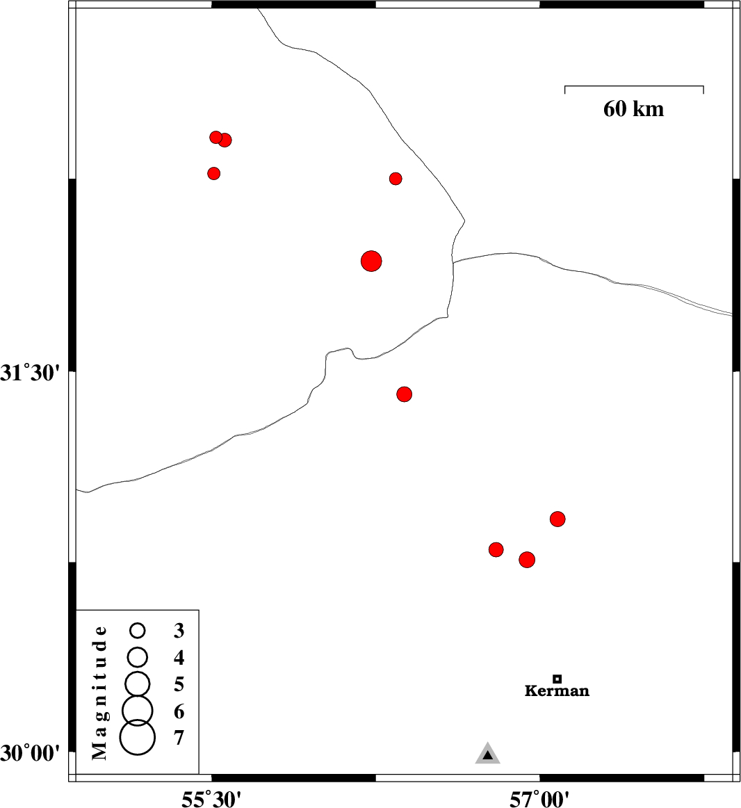 | 2008/12/20 | 06:13:06.3 | 09:43:06.3 | 30.92 | 57.08 | 15 | ML:3.1 | 45 km South-East of Ravar, Kerman Province | ||