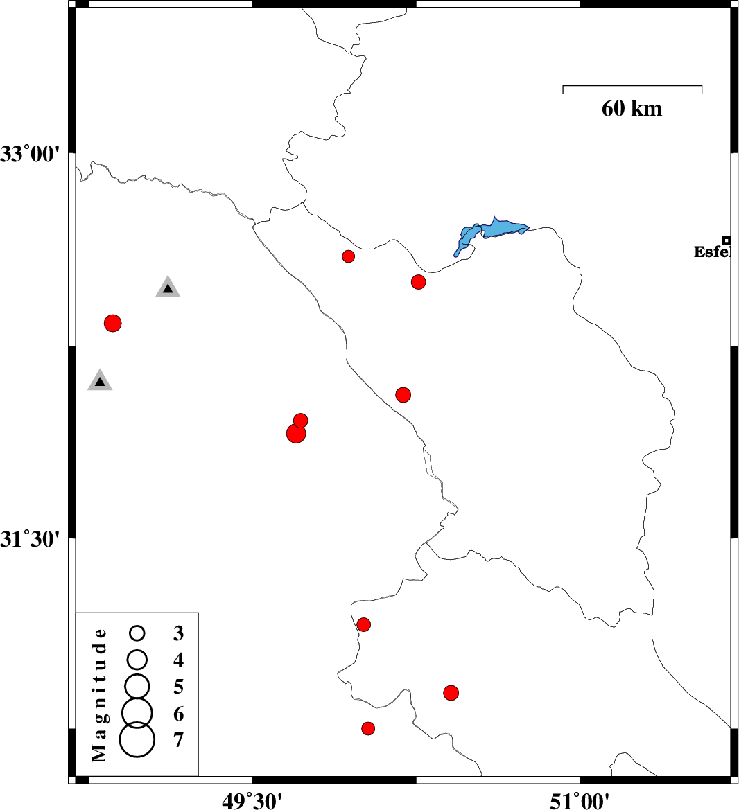 | 2009/01/07 | 01:19:01.3 | 04:49:01.3 | 31.91 | 49.7 | 45 | ML:4 | 17 km West of Izeh, Khoozestan Province | ||