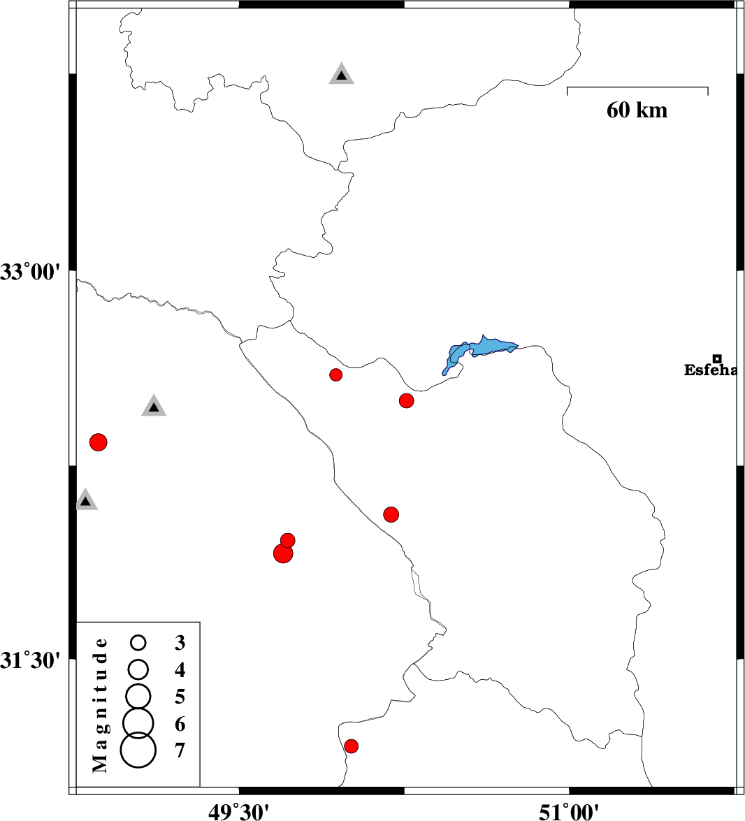 | 2009/01/07 | 01:19:01.3 | 04:49:01.3 | 31.91 | 49.7 | 45 | ML:4 | 17 km West of Izeh, Khoozestan Province |