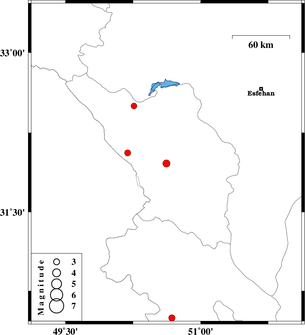 | 2009/01/28 | 06:42:20.3 | 10:12:20.3 | 31.96 | 50.62 | 14 | ML:3.6 | 4 km Ardel, Chaharmahal Bakhtiari Province | ||