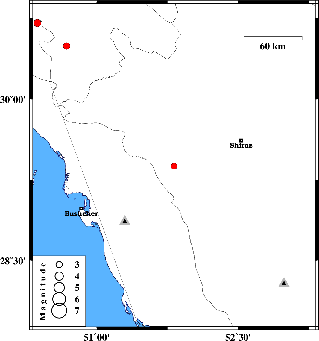| 2009/01/29 | 04:15:04.9 | 07:45:04.9 | 30.7 | 50.37 | 14 | ML:3.5 | 17 km North-East of Behbahan, Khoozestan Province | ||