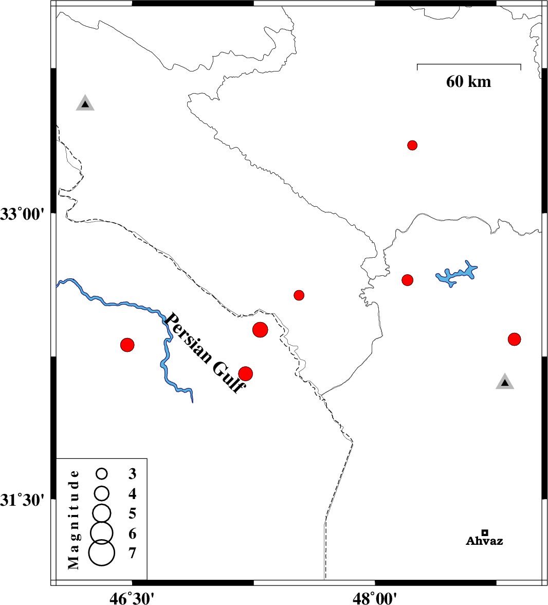 | 2009/01/10 | 20:04:00.9 | 23:34:00.9 | 32.34 | 48.86 | 27 | ML:3.5 | 23 km West of Lali, Khoozestan Province | ||
